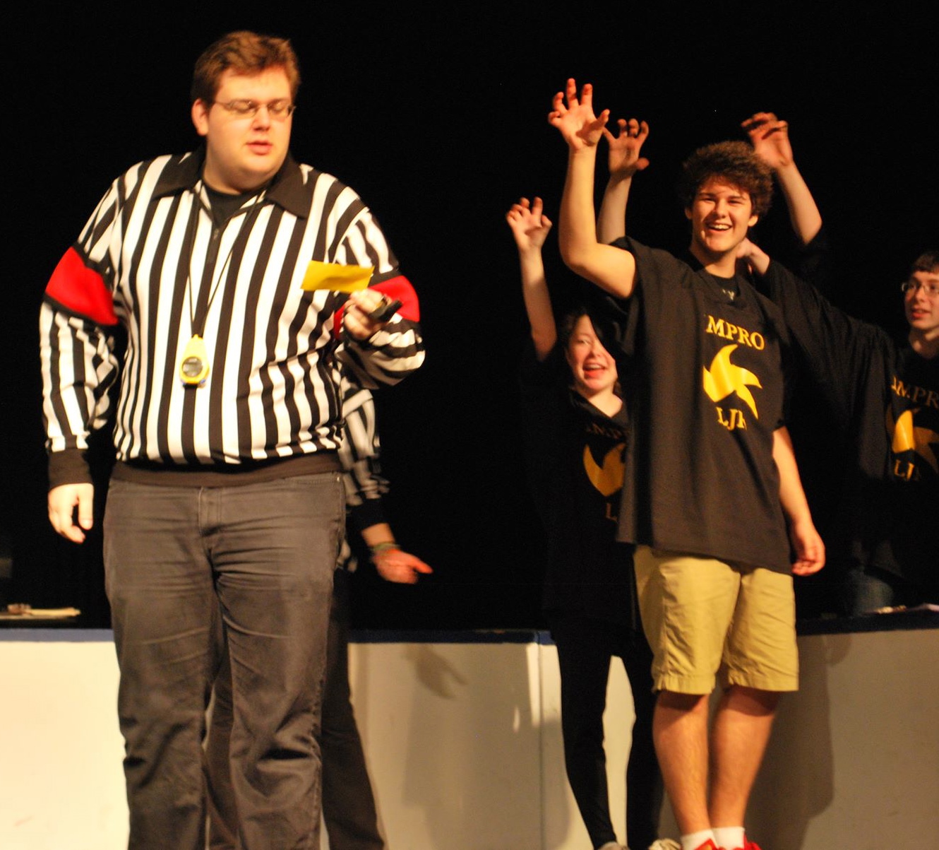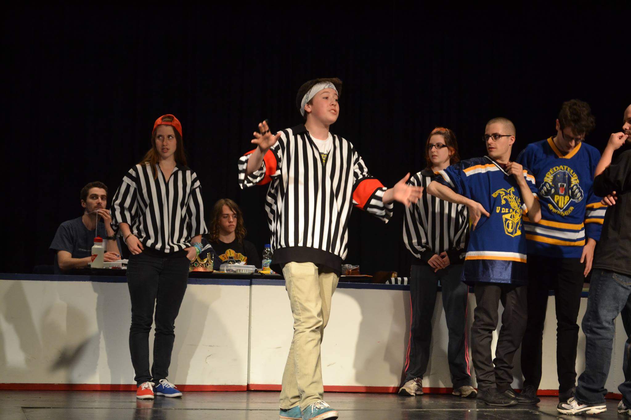 977386_460360727371730_341717230_oDepuis le début de l’année scolaire/universitaire, j’ai la chance et l’immense plaisir d’être le responsable de la LISPA (Ligue d’Improvisation Secondaire de la Péninsule Acadienne)! Voulant que la Ligue fonctionne bien, il a fallu que je m’arrange avec les ressources que j’avais. Je me suis trouvé une DJ qui est fidèle à son poste à tous les matchs. Je demande souvent aux joueurs qui ne jouent pas de combler des postes qui doivent être comblés et en même temps, ça forme les joueurs à différents rôles dans un match d’impro comme maître de cérémonie, statisticien ou juge de ligne. Mais il y a un poste en particulier que j’ai gardé pour moi. Ça faisait un petit bout que j’avais immensément hâte de remplir ce rôle… Plus précisément, depuis le tournoi de qualification d’impro 2012. C’est le rôle d’arbitre en chef! Je vous parle aujourd’hui de choses que j’ai apprises, TOUTES dans la dernière année!