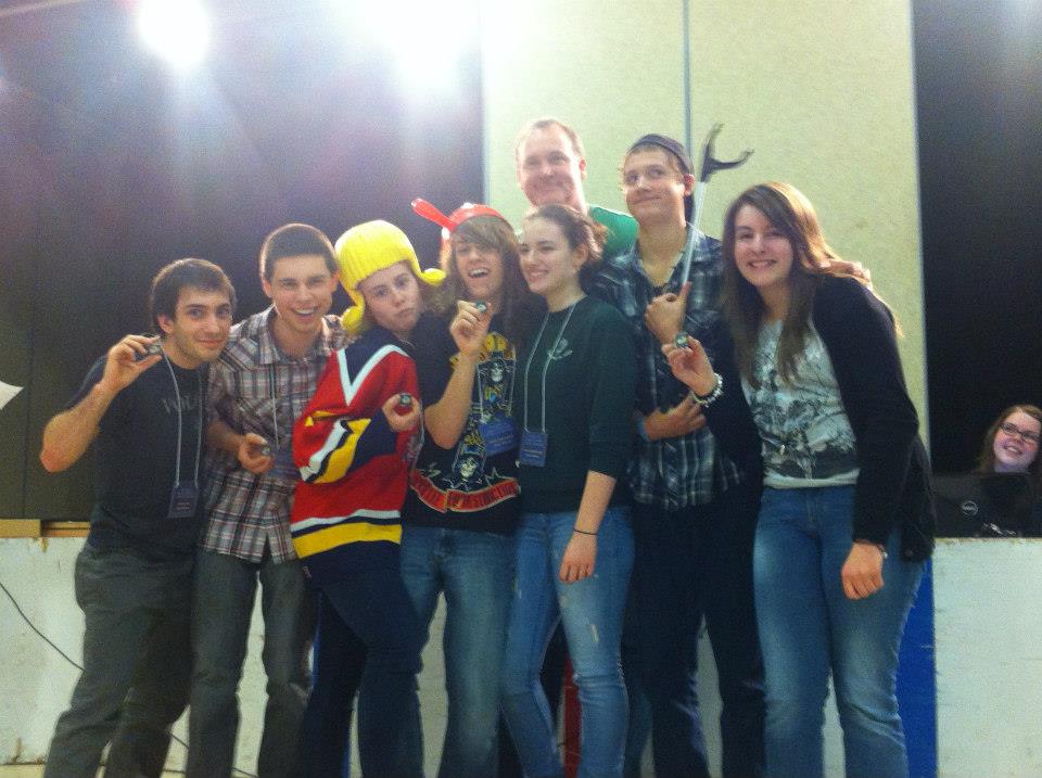 Mon pouce droit s’est ouvert et le sang en sortait comme une fontaine. Je me suis mis à la recherche d’une trousse de premiers soins avec Pinky, pour éventuellement trouver Mathieu Quimper, enseignant à l’école Saint-Anne et entraîneur de l’équipe hôtesse. Il savait qu’il y avait un cours de premiers soins qui se donnait à ce même moment dans la bâtisse. On s’y est présenté et le professeur en charge a demandé si un élève voulait m’aider. Aucun élève n’est venu à la barre – je pleure pour Fredericton – mais le professeur m’a fait un pansement presque aussi gros que ma main, forçant mon pouce à rester dans une position élevée. Isabelle Godin, Pascale Savoie-Brideau et Alexandre Hébert ont trouvé ça bien drôle en revenant vers Moncton.