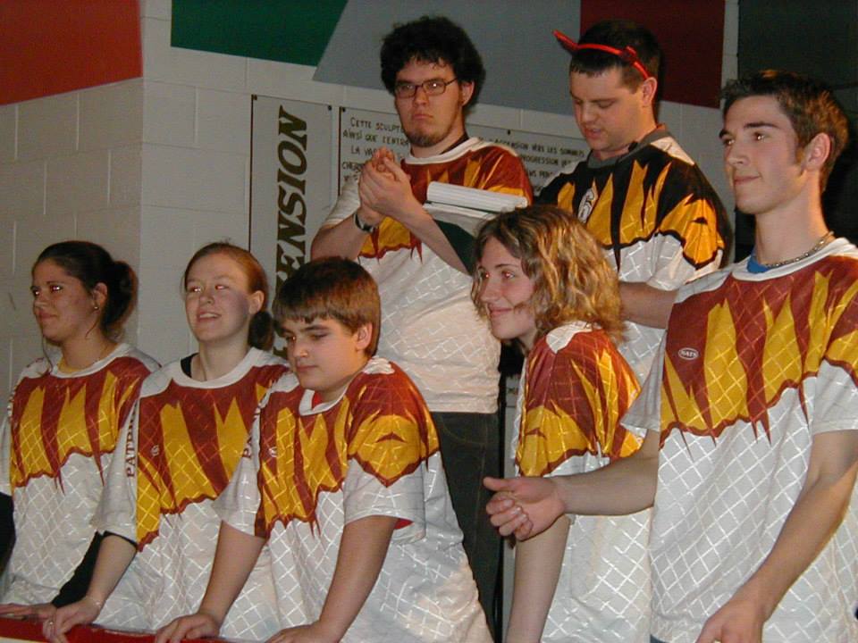 1. PAD : Le joueur de Bathurst qui a commencé cette improvisation de 2e prolongation, c’était moi !Mais heureusement, c’est Dave Doucet qui est entré tenter de m’aider dans cette improvisation (durant laquelle je ne comprenais pas grand chose, alors que tu faisais pas mal juste me toucher les cheveux (c’était l’année de ton obsession un peu trop grande pour mes cheveux)) et c’est lui que tu as frencher.