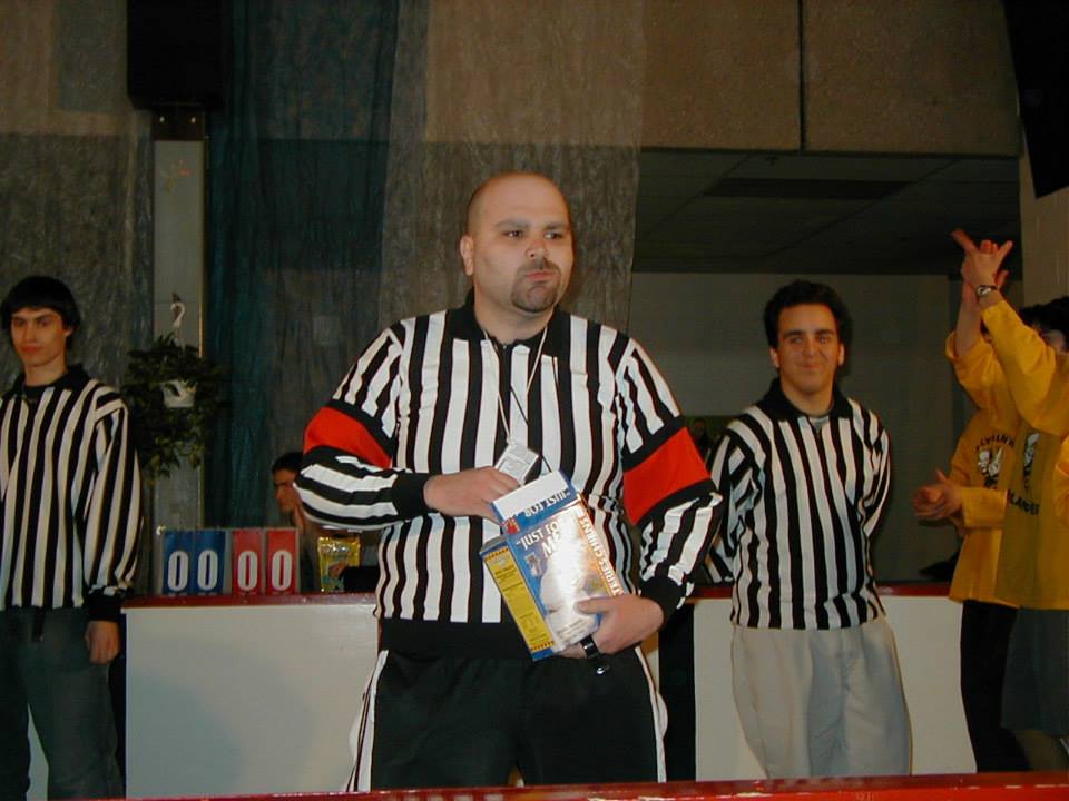 Je me souviens d’avoir été marqué par le jeu de la PRP de Campbelton, surtout leurs impros chantées (Alain Basque, anyone?) et leurs dramatiques (Nath et Mimie Levesque aussi…). Et j’ai eu le privilège d’assister à la naissance d’une dynastie : la CDJ, qui allait remporter les 6 premières Gougounes. Piton, Bébite, Grover et la gang étaient vraiment au-dessus du reste des équipes. Coachés par un Albert Roy en grande forme, ils faisaient preuve de théâtralité, de culture générale et de sens du timing impeccables! Cette fin de semaine a probablement été mon plus grand moment pédagogique d’impro… Anecdote : pendant la finale (dans laquelle nous ne jouions pas), j’ai porté le costume de Ti-Pique pour une période. À date, ma seule expérience dans un costume de mascotte.