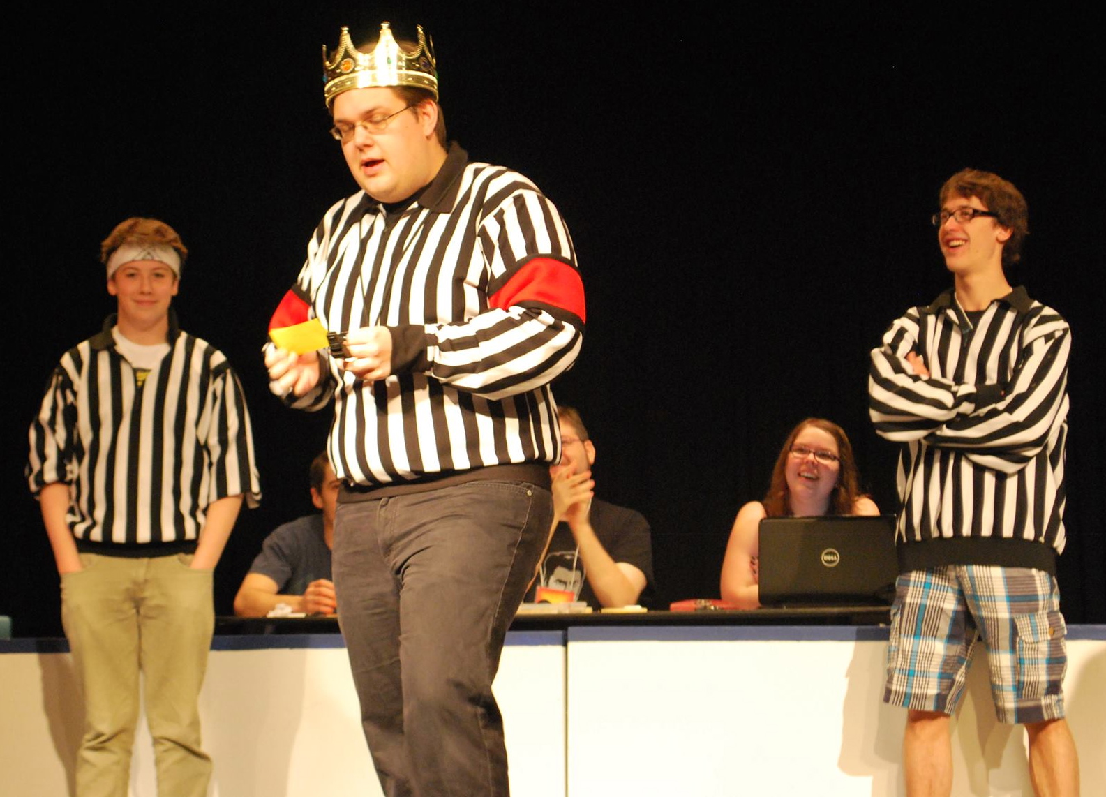 2010 que j’ai participé à mon premier tournoi d’improvisation. Je n’étais qu’en neuvième année, vous pouvez donc vous imaginer un petit joueur fébrile, simplement là parce qu’il manquait un substitut et qui trouvait tous les autres improvisateurs intimidants et incroyablement bons. Cependant, cela ne m’a pas empêché de tanner mon entraîneur pour que je puisse jouer au moins un match lors du tournoi. Après plusieurs tasses de café, c’est alors que mon entraineur prit pitié de moi et me fît jouer une partie. Me voilà donc, seul dans l’arène regardant les lumières éblouissantes et en me disant «Qu’ai-je été faire là, jouer…»