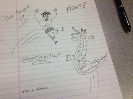 Puisque j’avais emporté un dictionnaire au tournoi (Mais pourquoi? Ne faites pas ça les jeunes.) mon coach a dit «Eille, t’es smart toi, entre et dit plein de choses intelligentes!» Petit problème, c’est un dictionnaire que j’avais, je connaissais les mots et ce qu’ils voulaient dire, pas comment les utiliser…