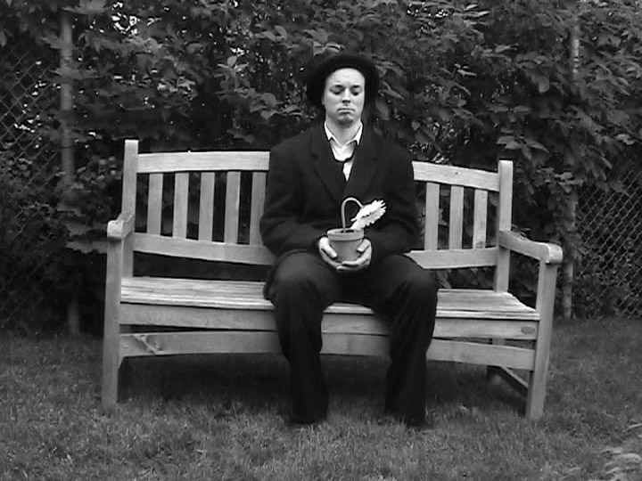 La vidéo : Sylvain en sorte de Charlot/clochard sur le banc avec une fleur dans les mains. Il pleut. Il tonne. Il éloise. Chaque fois qu’on revient à Sylvain, sa fleur est en pire état. Fanée, puis disparue. Ensuite, Annik est sur la plage en train de faire un feu.