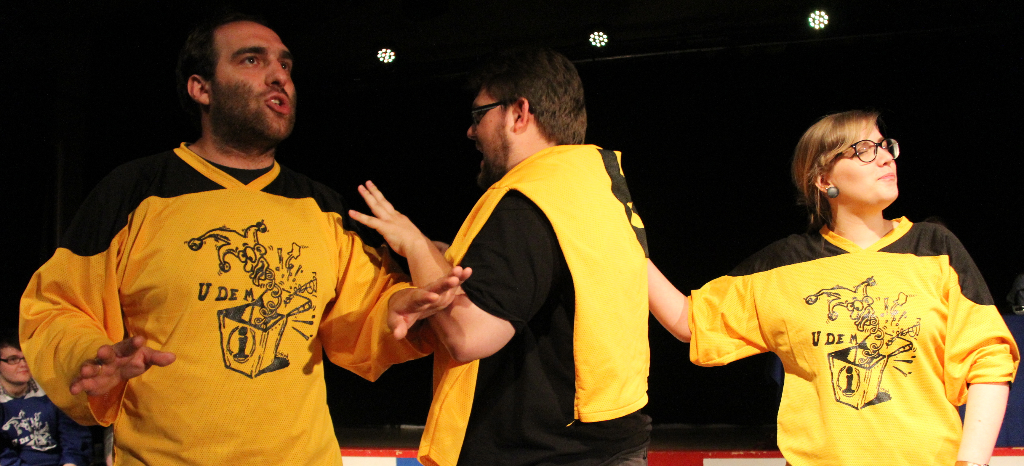 Je dois commencer en spécifiant que je suis comédien de métier, donc ma vision des choses est fortement influencée par ceci. Il y a plusieurs façons de voir l’impro, et aucune d’entre elles n’est « mal » au sens propre du terme. Ceci dit, je crois dur comme fer que l’improvisation (que ce soit l’impro-match ou autre) est un acte théâtral.