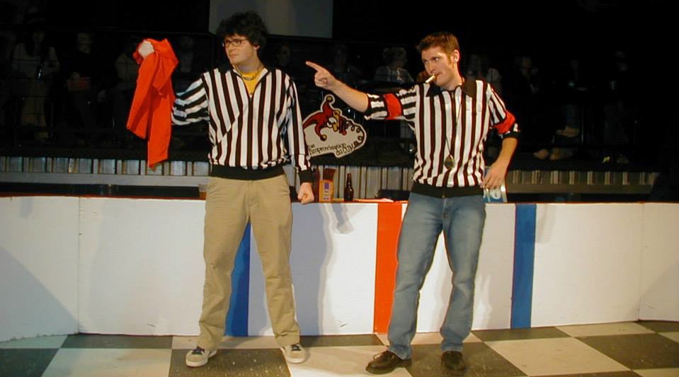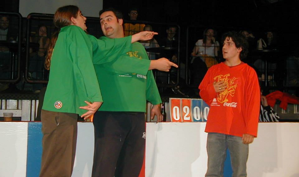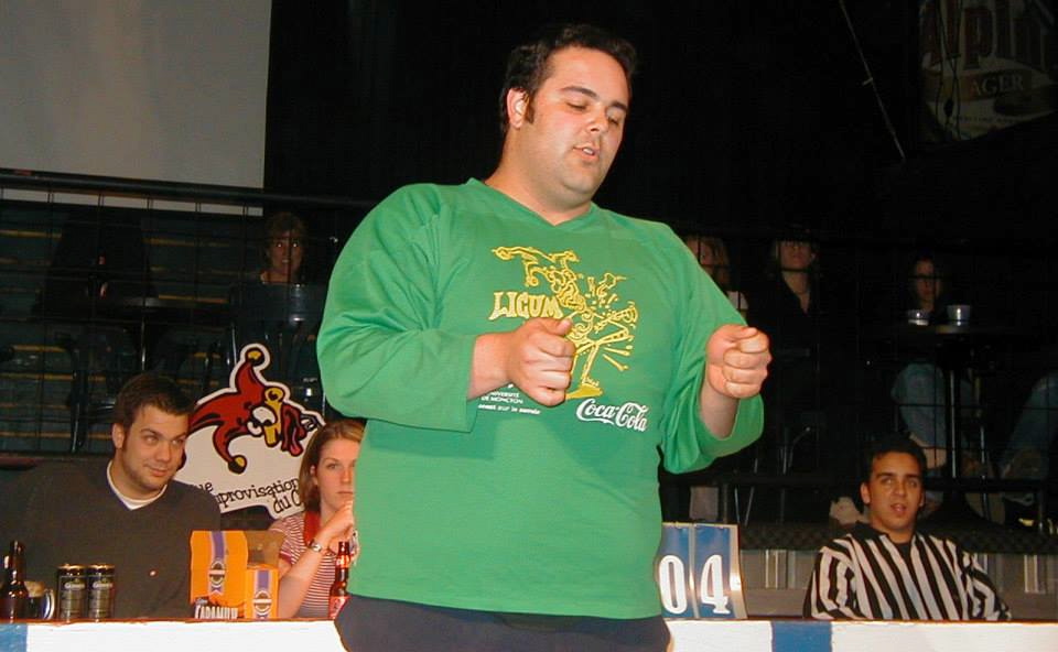 Marc Léger, joueur d’improvisation de deuxième génération, bien connu pour ses tirades avec les arbitres, se lance. « Monsieur l’arbitre… Mon joueur a-t-il vraiment manqué de respect au thème… Je crois que c’est plutôt vous qui manquez de respect envers les ainés. »