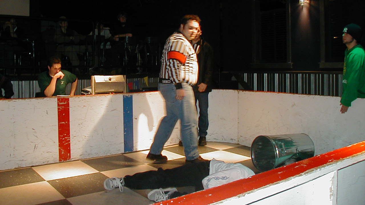 Pour montrer que même un arbitre peut se (faire) casser la gueule des fois, prenons le cas de Jacques Parent, qui a mangé une claque par la tête lors d’un des premiers improvisathons. En effet, quelqu’un du public, voulant s’assurer que son désarroi face à une punition soit bien entendu, lance un couvre-chaussure (oui, ce type de claque LÀ) en direction de Maître Parent et le heurte solidement sur la tempe. Jacques bascule vers l’arrière et on le perd de vue derrière la bande. On l’avait assommé. Il se ramasse avec une commotion cérébrale et l’autre arbitre, Stéphane Raymond, doit finir l’improvisathon tout seul – elle est là, la vraie douleur. Jacques s’en est remis, mais on ne l’a plus revu dans l’arène après la fin de la saison…