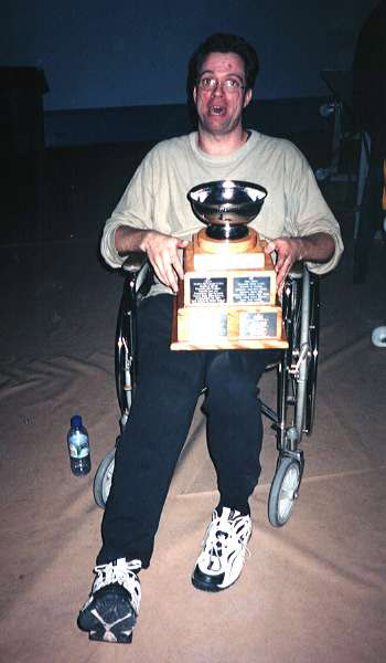L’histoire est ironique et tragique. En 2002, il y a encore des juges de salle à la CUI. Je suis Ombudsman du tournoi et pour assurer l’intégrité du processus, je vais chercher des anciens du circuit, pas tous du Nouveau-Brunswick. Deux des juges ainsi invités sont des anciens joueurs (et gagnants multiples de la CUI) de l’Université d’Ottawa – Max « Thunderdome » St-Cyr et Stéphane Pilon. Ce qui les convainc d’entreprendre le voyage en nos terres, surtout Pilon, c’est l’opportunité de jouer au match-étoile. Eh bien, Pilon est tellement excité, qu’à la première impro, il se lance trop vite et trop fort, et avant même de dire un seul mot, le pied pris entre deux coussins de gymnase bleus, sa jambe se plie sous lui. Douleur accablante. J’arbitrais. Pour un instant, je me suis demandé si ça faisait partie du personnage. Je lui demande. La situation est vraie. Coup de sifflet, va falloir prendre une pause, y a-t-il un médecin dans la salle ? Oui, il y en avait un. On a passé la soirée à l’urgence, et Pilon a passé la prochaine année en chaise roulante et en thérapie. Et ça, mes amis, c’est la pire blessure d’impro que je n’aie jamais vue.