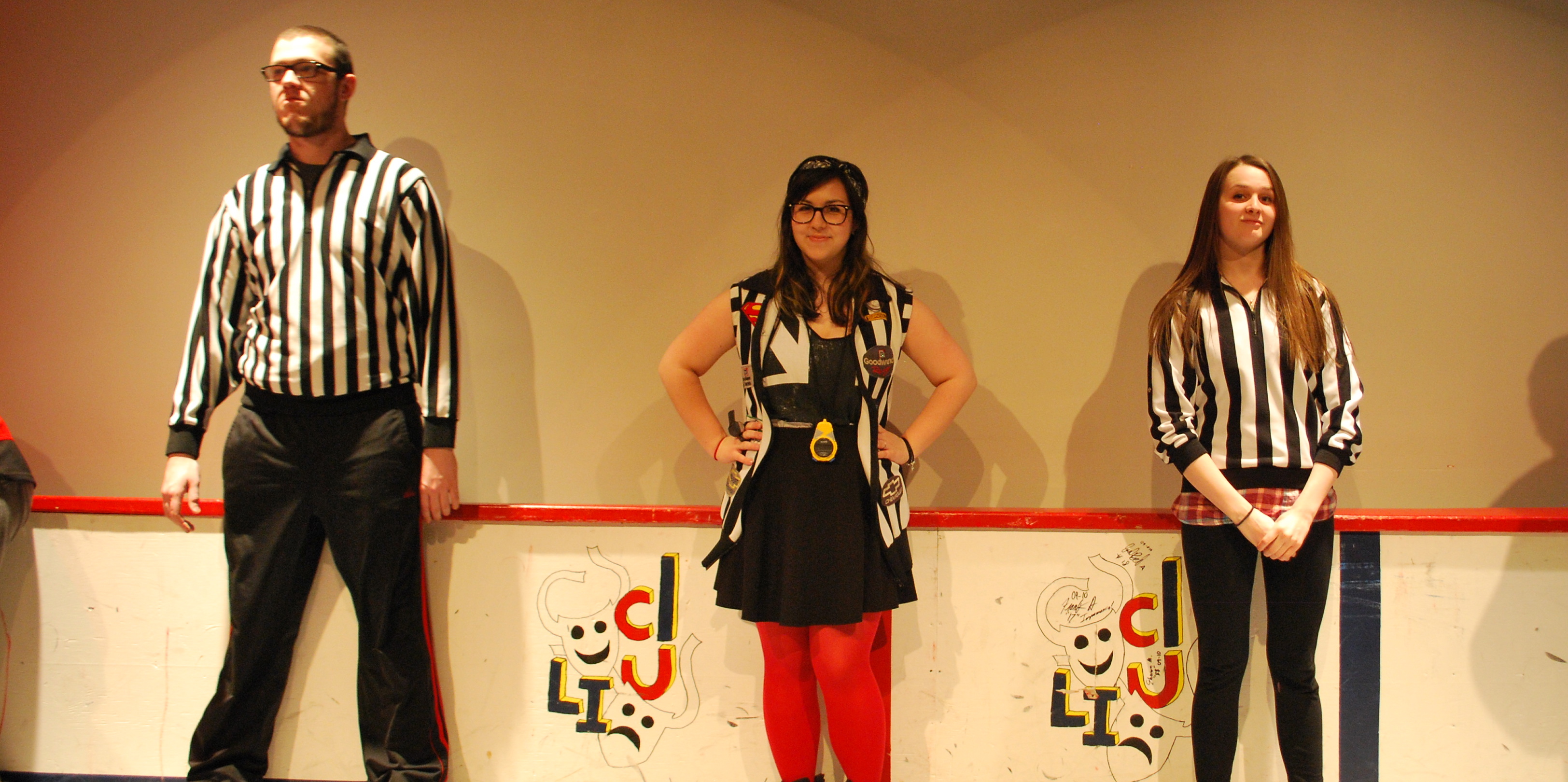 Le Gazou bronzé organisé à l’été 2013 a été mon réveil. C’est après cet événement que je m’étais donnée comme objectif de faire un retour en impro à travers la création d’une équipe, « St-Quendgwick », formée de joueurs et joueuses de des écoles secondaires de St-Quentin et de Kedgwick. Plusieurs personnes m’ont aidé dans ma démarche. Ils m’ont été d’une grande aide et je ne les remercierai jamais assez. Cependant, même si la motivation est grande, elle n’est parfois pas suffisante pour former une équipe solide (RIP St-Quendgwick septembre 2013 – janvier 2014). Je ne me suis tout de même pas découragée. Plutôt, au tournoi de qualification 2014, j’ai revêtit le chandail rayé comme juge de ligne. Aujourd’hui étudiante à l’Université de Moncton, je peux finalement dire que je fais partie d’une équipe. La LICUM m’offre l’opportunité de jouer et de rattraper tout le temps que je n’ai pas pu le faire au secondaire.