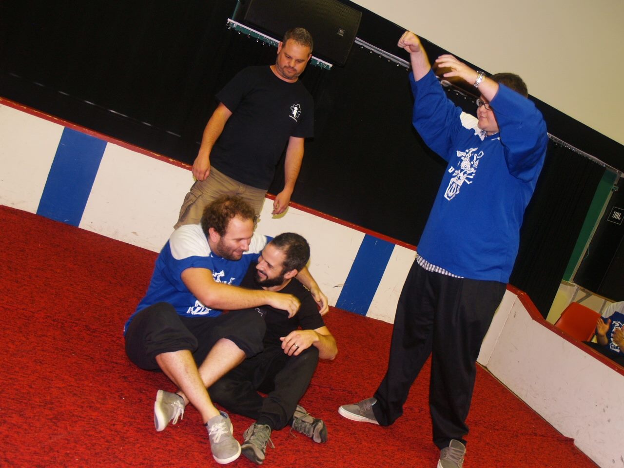 La deuxième demi-finale met aux prises Les Impromptus et Les Hawt Dawgz W00f W00f #Champ2014 #Yolo!