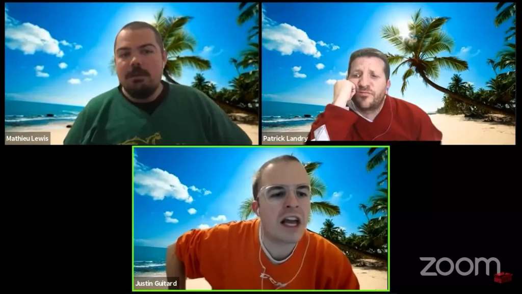 Et finalement, si la version des règlements en vigueur le permet, il ne faut pas oublier l’option d’utiliser les paramètres de la plateforme afin d’ajouter une image en fond d’écran. Dans ce cas, on remplace complètement notre salon avec une image du lieu exact (ou du plus prêt possible) dans lequel se passe notre impro, ainsi dirigeant et guidant l’imagination des spectateurs.