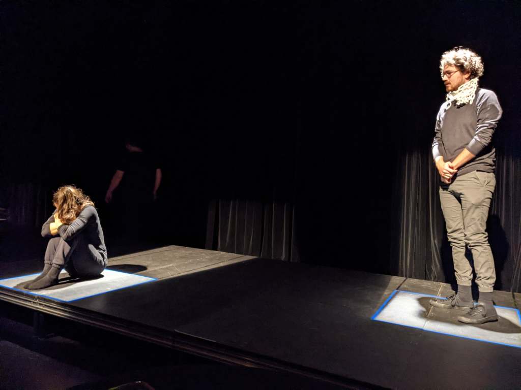Jeudi dernier se déroulait la deuxième de trois pièces de théâtre improvisées organisées par Impro NB, mettant en vedette des comédiens professionnels – Annik Landry, Bass Levesque, Bianca Richard et Ludger Beaulieu – dans un contexte de théâtre professionnel (dans ce cas, la Salle Empress du Théâtre Capitol). «Cages – Un mystère captivant et complètement improvisé » offre donc une autre mise en scène minimaliste, emprisonnant les comédiens dans des carrés pas plus de 3 pieds par 3 pieds, sous une douche de lumière acide. On ne sait pas ce qu’ils font là, ni pourquoi ils sont encagés. La voix électronique sur le haut-parleur n’aide pas, avec ses messages de désespoirs qui rappellent Kafka, le jeu de rôle Paranoia, ou le jeu vidéo Portal. C’est du théâtre de l’absurde, et ambigu jusqu’à la dernière goutte. Comment l’avez-VOUS pris? Quelques possibilités…