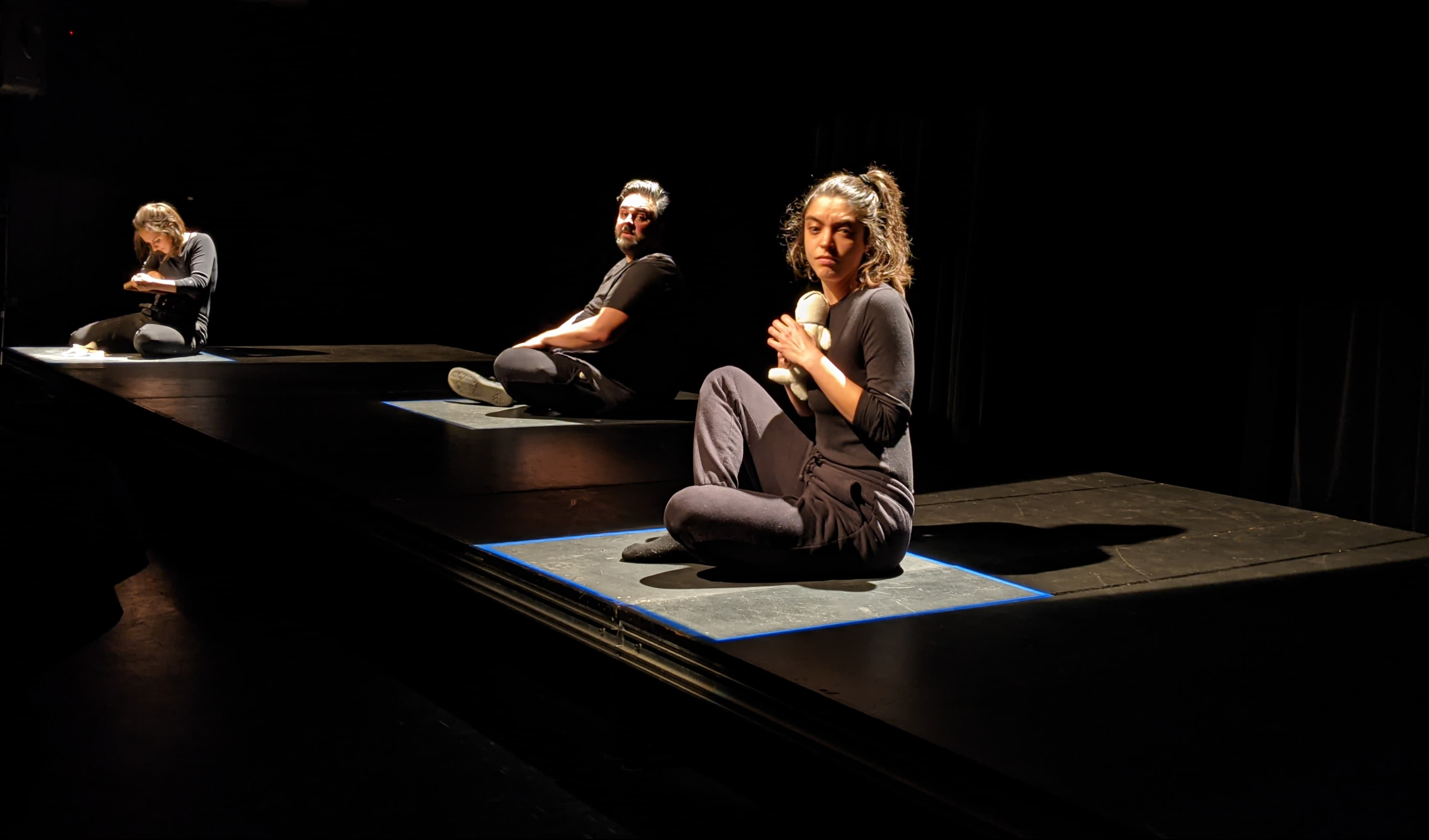 Celle qui offre le moins de profondeur, mais un bon point de départ pour décrire l’histoire qui s’est déroulée. Quatre personnages, décrits comme des prisonniers et à qui le public a attribué des rôles. Annik sera le vétéran qui est là depuis le plus longtemps, qui disjoncte, qui écrit ses théories mathématiques sur une ardoise – elle a dû respirer un montant important de craie. Bass a une cuiller pour mieux creuser un tunnel et se veut pas mal chill étant donné la situation. Ludger porte des chaînes parce qu’il est dangereux. Bianca arrivera après quelques minutes avec son béluga en pluche (son surnom deviendra « Toutou »), la petite nouvelle qui ne comprend pas ce qui se passe.