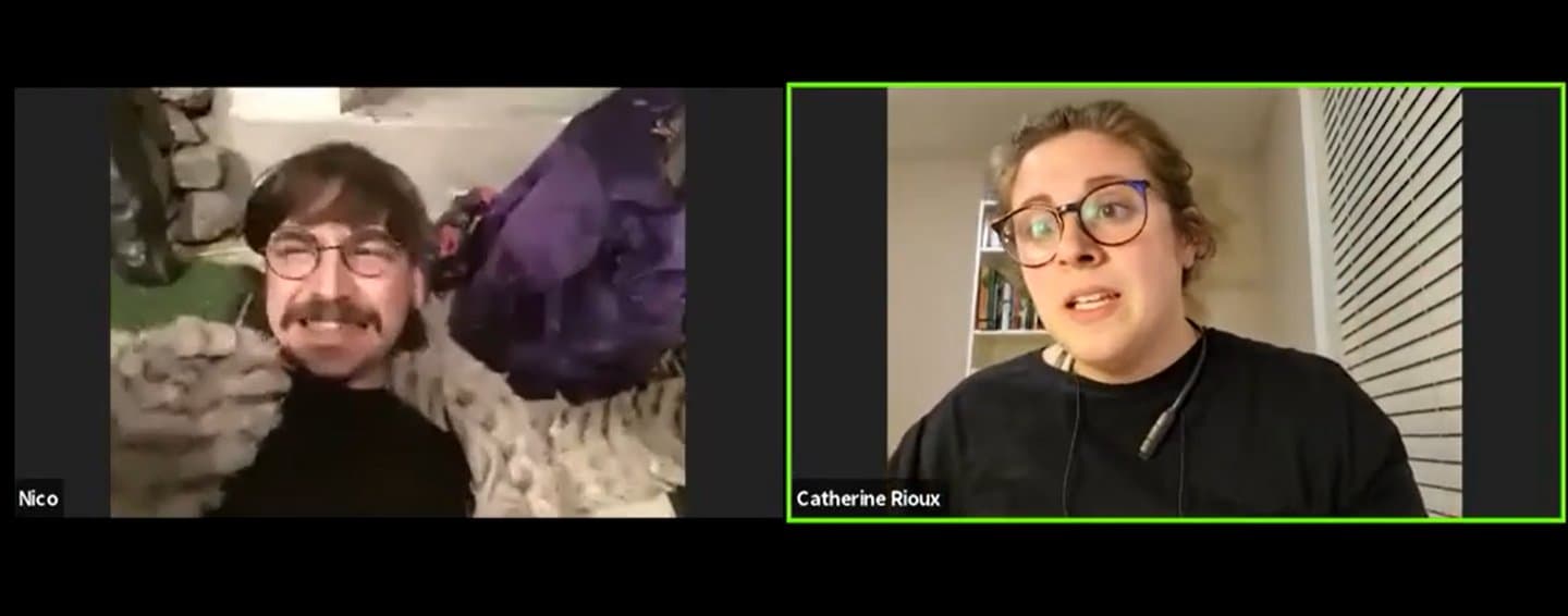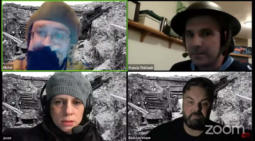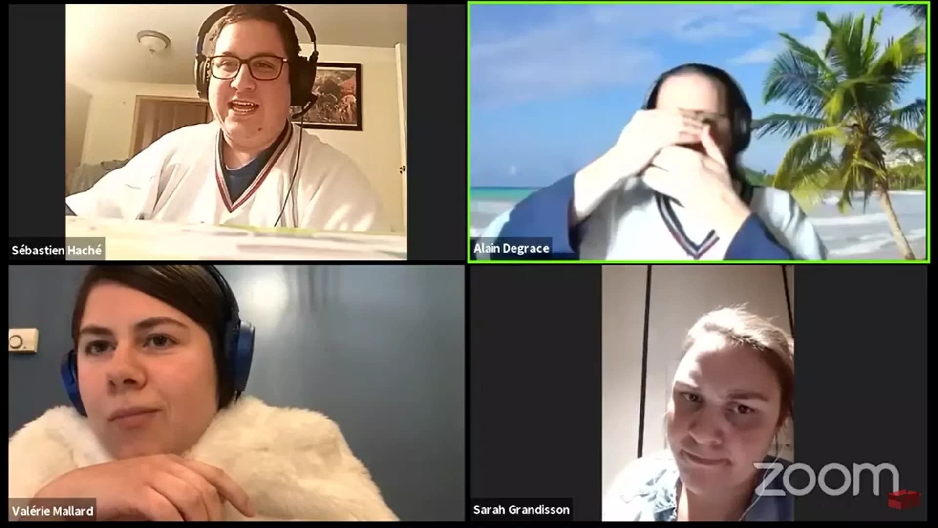 En relâche, c’est un peu l’occasion de faire une réflexion sur le jeu en ligne et l’avenir de cette ligue. Car elle aura un avenir! Bien que tout le monde a hâte de pouvoir jouer en personne, la formule en ligne offre d’uniques opportunités, principalement la chance de jouer avec des expatriés et des gens d’ailleurs. Sans la Click, je ne pourrais pas imaginer de circonstances faciles où j’aurais pu jouer avec Francis Thériault, Josée Bazinet ou Nicolas Dupuis. Même des joueurs qui peuvent se retrouver dans la région relativement souvent (en situation non-pandémique) comme les membres de la Ligue d’Improvisation Chaleur n’auraient pas pu participer à autant de rencontres, en hiver en plus!