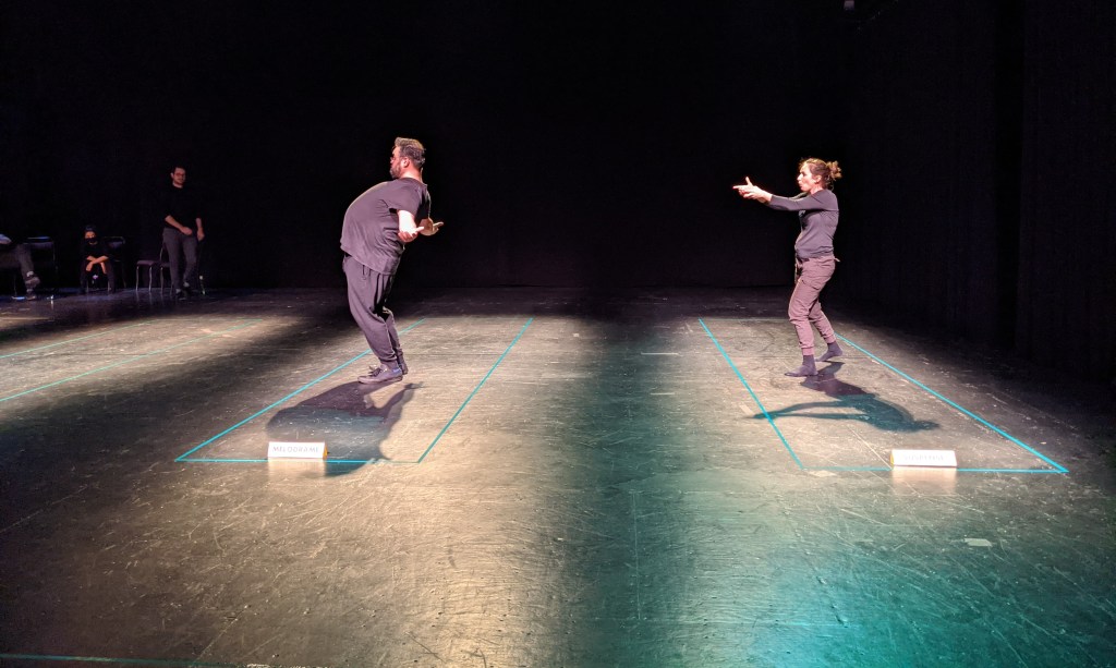 -La distanciation physique était au centre de chaque mise en scène, et le thème de l’isolation s’est fait sentir, organiquement, chaque fois. Dans ce cas-ci, les époux ne peuvent pas se rejoindre et parlent dans le vide, incertains d’être entendus au bout du fil. Stéphane est le gars qui a de l’entregent et parle à tout le monde au bureau, mais ne se rend jamais vulnérable, n’est jamais VRAI avec quiconque. Marie-Pierre est présente, mais n’engage pas avec la réalité (sa peur et son sourire sont résultats du même malaise).