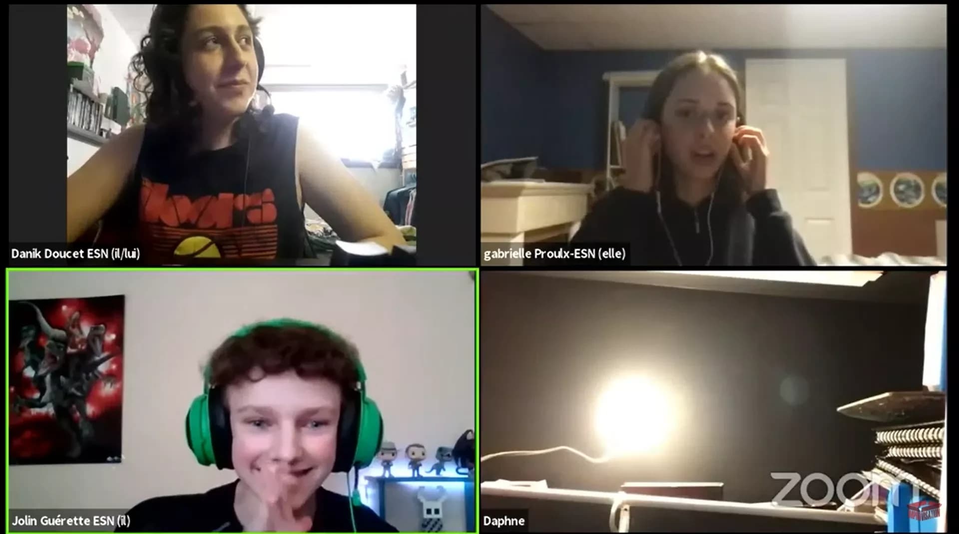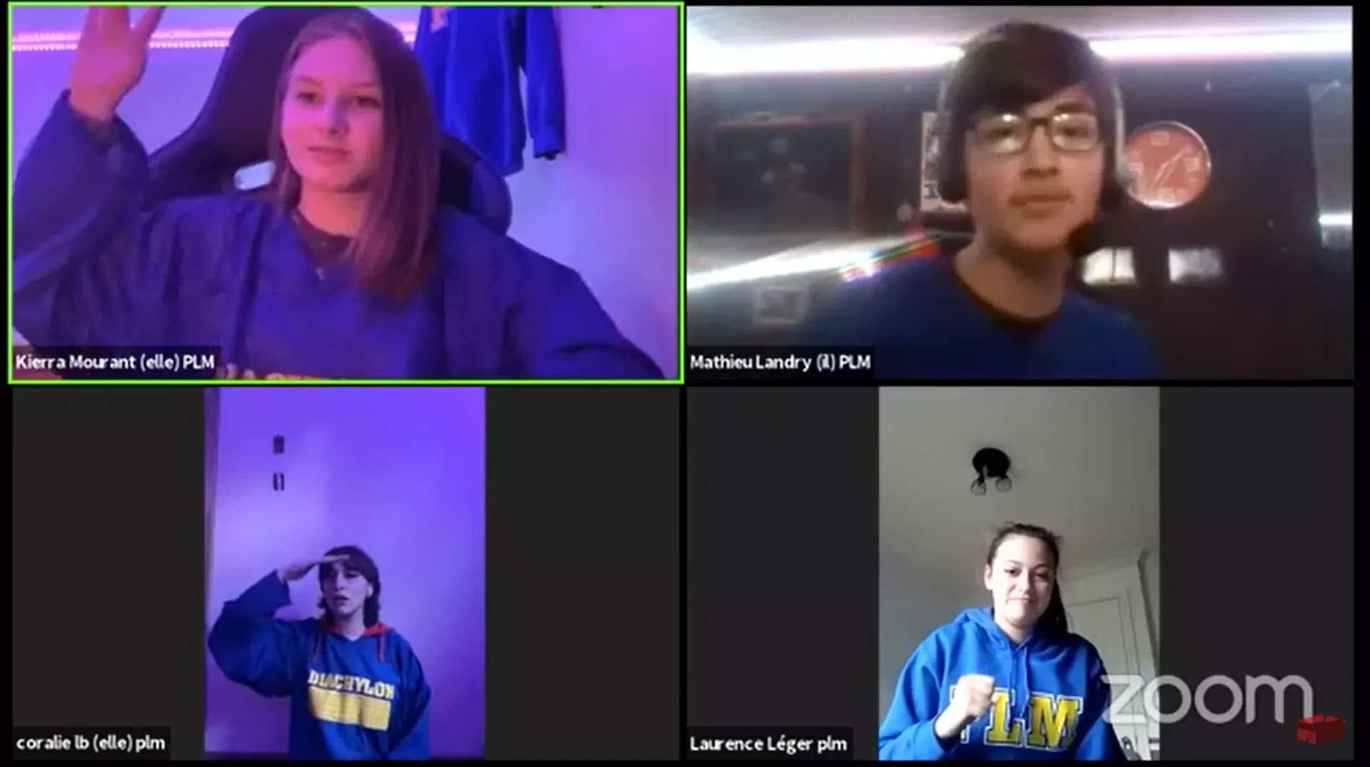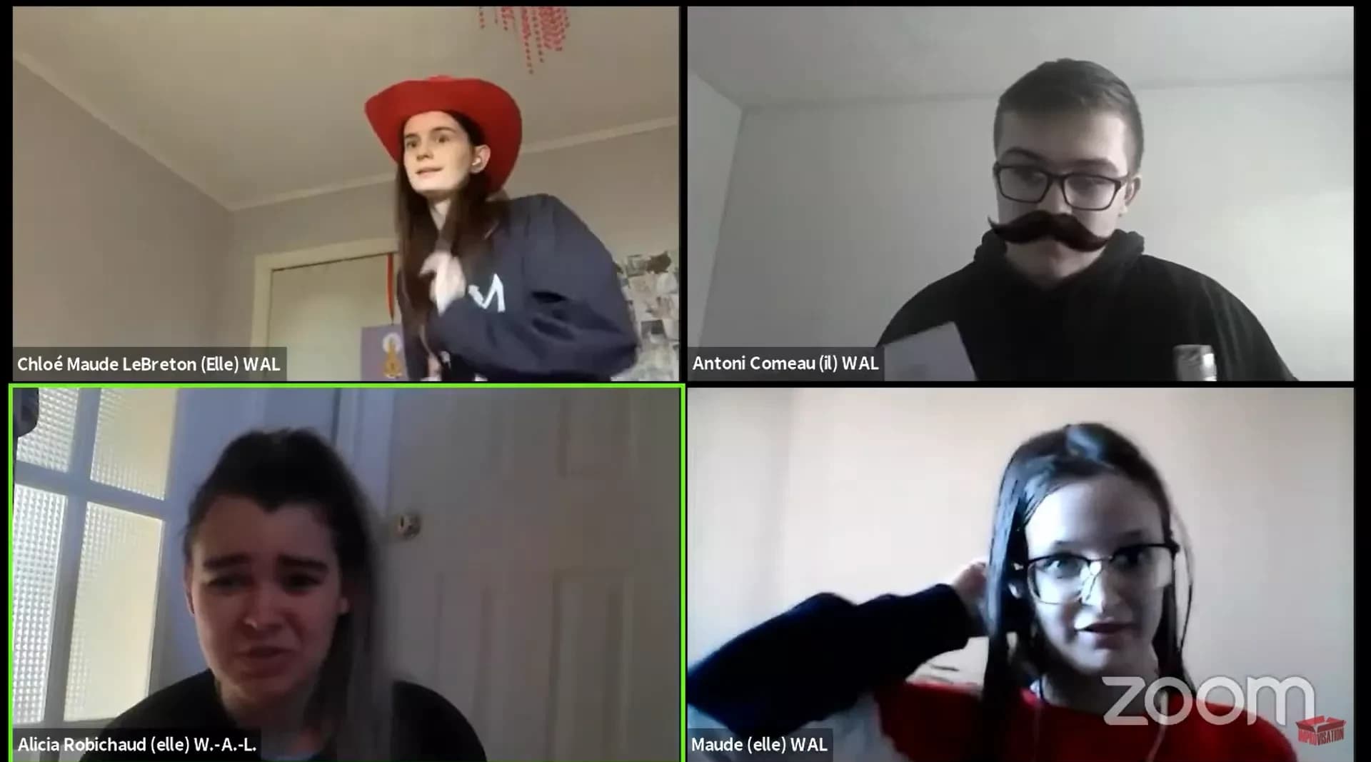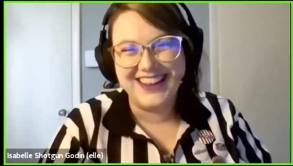 Comme le jeu, les rôles d’officiels ont également retenus un fonctionnement habituel tout en adoptant de nouvelles pratiques propres au jeu en ligne. Isabelle Godin, officielle, explique. « J’ai particulièrement aimé juger les matchs puisqu’on y évalue vraiment la qualité de chaque impro plutôt que laquelle était la ‘meilleure’. Les joueurs se sont rapidement adaptés à la formule en ligne et m’ont épatée par leur esprit novateur. J’espère voir plus d’équipes faire le saut vers le jeu en ligne quand la prochaine occasion se présentera! » Clo Allard affirme avoir été impressionné.e par la rapidité d’adaptation des joueurs au format : « Les jeunes ont traité le médium comme une opportunité et ça se voit dans les matchs! Ils étaient à l’aise avec leur environnement et je les ai trouvés super créatifs. Je pense qu’en post et pré-match, c’était évident qu’ils avaient du fun. C’était validant comme expérience parce que je suis fan du format depuis le début et ils ont vraiment réussi à montrer que c’est une forme du jeu qui a sa place. »