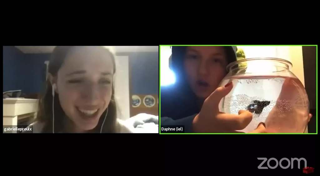 Tel que l’indique son nom et suggère son logo, le tournoi est en effet éphémère. Chaque match était diffusé en direct sur la chaîne YouTube d’Improvisation NB et y restait pendant une semaine avant de disparaître! Comme c’est le cas lors de tournois en personne, les impros jouées ne survivent que dans nos souvenirs maintenant! Et le tournoi nous a donné beaucoup de moments mémorables, que ce soit les impros hilarantes, la découverte de moyens créatifs d’utiliser les outils du jeu en ligne, ou les périodes relaxes après la diffusion des matchs où les joueurs avaient l’occasion de jaser et surtout, de nous présenter leurs animaux de compagnie.