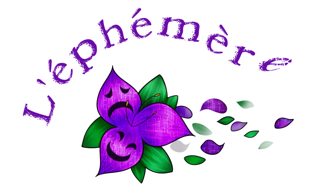 Chloé Maude LeBreton, capitaine de l’équipe de Tracadie (WAL), a créé le logo pour l’événement. Elle affirme que la nature du tournoi a influencé plusieurs éléments du design : « J’ai eu l’inspiration pour le logo lorsque j’ai vu une image de la fleur éphémère. Les pétales semi-triangulaires m’ont rappelé la forme des masques de théâtre. J’ai fait en sorte que des pétales et feuilles semblaient s’échapper pour souligner l’impermanence du tournoi et j’ai ajouté des petits détails technologiques sur les pétales pour faire un petit clin d’œil au format numérique de L’Éphémère. »