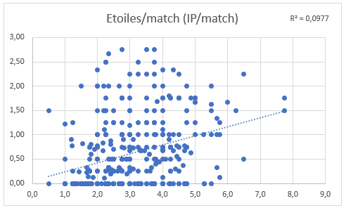 Et, comme les étoiles sont une donnée subjective non-statistique, c’est difficile de la lier à une donnée comme l’apport ou encore même le nombre d’improvisation jouées…il y a trop d’impondérables…