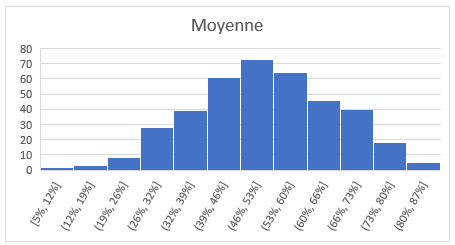 La moyenne d’impro gagnées, quant à elle, est beaucoup plus normalement distribuée :