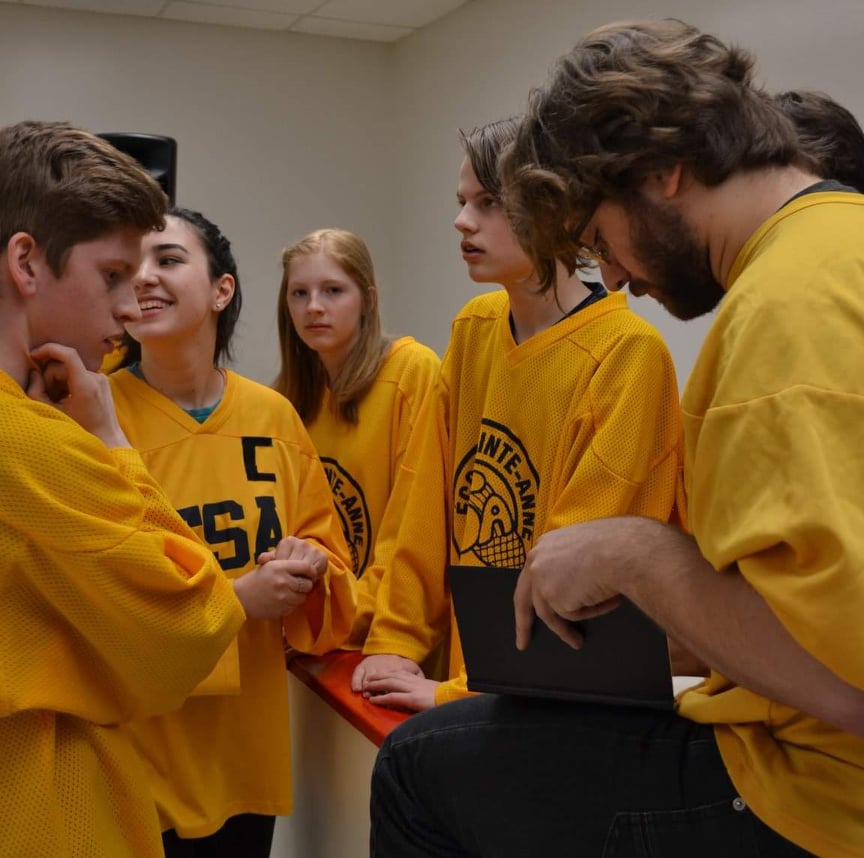 L’arbitre annonce que l’improvisation sera de nature mixte, alors vous vous croisez les doigts et mettez votre main avec celle des autres au milieu du cercle, pour servir d’aide-mémoire pour vous et vos coéquipiers. C’est la première impro du match, on lance des idées, on crée la semblance d’un plan. Tout semble bien aller jusqu’à ce que l’entraîneur, ou un joueur pour qui l’excitation vient de laisser place à la nervosité, pose la question.