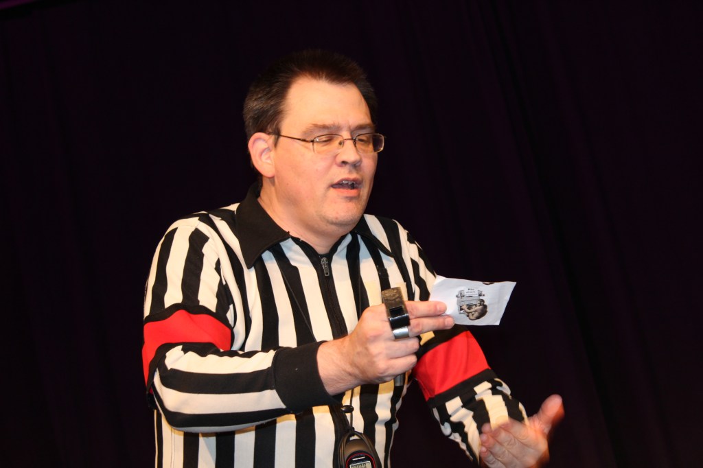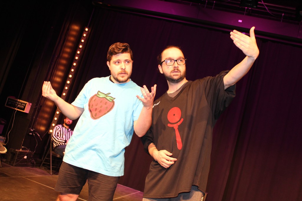 En aucun cas le public veut-il voir un faux arbitre commencer le sketch en lisant un thème, ou un faux caucus suivi d’une parodie d’une impro. On veut plonger dans le sketch lui-même directement. Il faut voir le méta-thème non pas comme une « impro à propos de l’impro », mais plutôt comme une catégorie-concept ou une sorte d’à la manière de. Notre premier exemple aurait pu avoir un autre titre greffé à la catégorie « à la manière d’une intelligence artificielle ». Notre second pourrait être sous l’énigmatique « Catégorie : Bleu! ». Et ainsi de suite. Mais en donnant la condition dans le titre lui-même, l’arbitre 1) n’a pas besoin de dépenser une de ses trois catégories sur un concept d’une fois, ni 2) changer les règlements. En effet, il crée aussi une opportunité pour les joueurs de 3) jouer sans thème ou décider de leur propre thème.