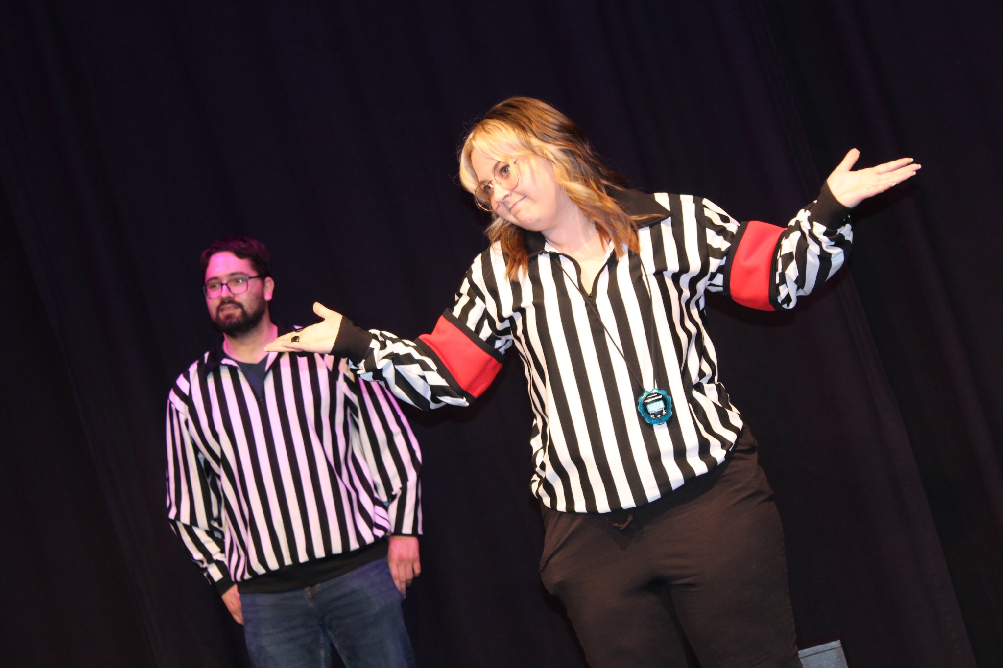 Une de celles-ci était de renoncer à l’utilisation de la punition et du terme, et pour bonne cause : Quand on dit que notre jeu est mauvais, le public, qui souvent n’a pas les standards élevés des improvisateurs eux-mêmes, commence à la croire. « Ah, c’était peut-être pas aussi bon que je le croyais. » Et peu à peu, il arrête de voir notre spectacle comme un must. Un tel phénomène mine aussi la confiance – et donc le jeu – des joueurs aussi. (Je me souviens soudainement d’un ancien entraîneur qui avait tendance à trouver toutes les impros « cul-cul », si bien que ses joueurs se décourageaient facilement et trouvaient leurs propres impros « cul-cul » sans qu’il soit présent. Même chose.)