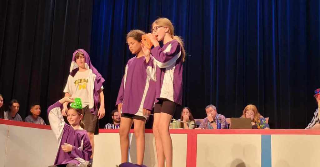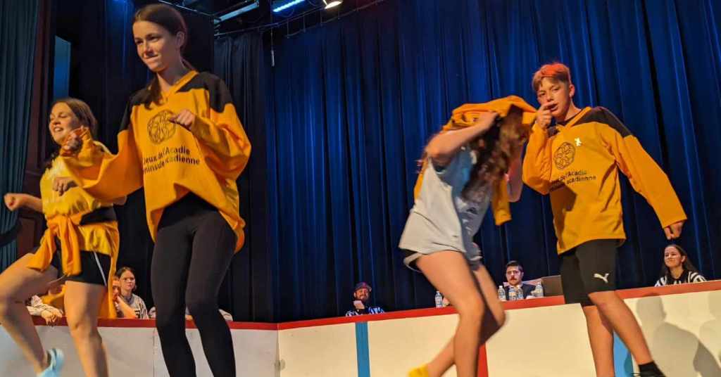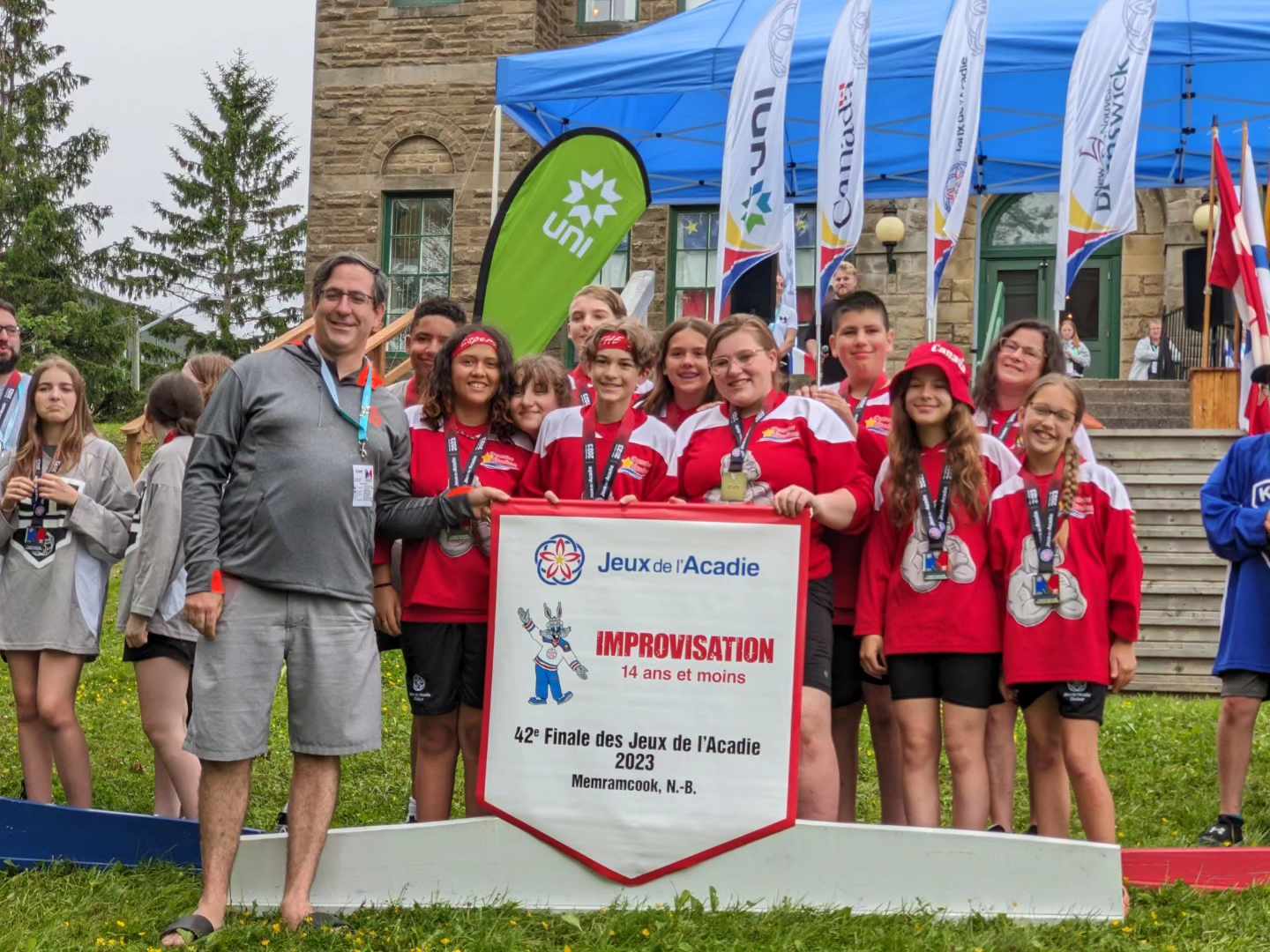 La finale des Jeux de l’Acadie a eu lieu à Memramcook du 28 juin au 2 juillet 2023. Pour la première fois, la finale a suivi la formule en deux blocs permettant au comité organisateur de tenir l’événement avec les installations présentes. Par conséquent, la discipline d’improvisation et celle de la Voix des groupes ne font plus compétition pour les salles de spectacle disponibles dans la région. C’est dans le Bloc B, du 30 juin au 2 juillet, que la discipline d’improvisation a été présentée dans le théâtre du Monument Lefebvre – sans doute la plus vieille salle où l’improvisation a été jouée au Nouveau-Brunswick – 1897!
