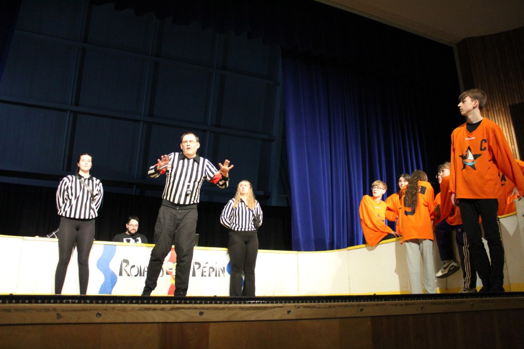 Avant le match, il faut ÉCRIRE le match (les cartons de thème), et il faut rencontrer les joueurs pour leur expliquer ce qui est attendu d’eux. Pour vous, les arbitres, vous savez c’est quoi, la complexité d’ensuite arbitrer un match. Il y a beaucoup de choses à surveiller, comme vérifier si le jeu se déroule bien et que les joueurs respectent les règles du jeu. Il faut s’assurer de contrôler les 12 joueurs du match pour qu’ils ne perdent pas contrôle d’eux- mêmes (ça n’arrive jamais, ça! Ha! Ha! Ha!). Il faut aussi s’assurer de contrôler le public pour que lui aussi ne perde pas contrôle et qu’il respecte le jeu qui se déroule devant lui. Il ne faut pas oublier que la majorité du public n’est pas composé de joueurs d’impro et de fanatiques du jeu.