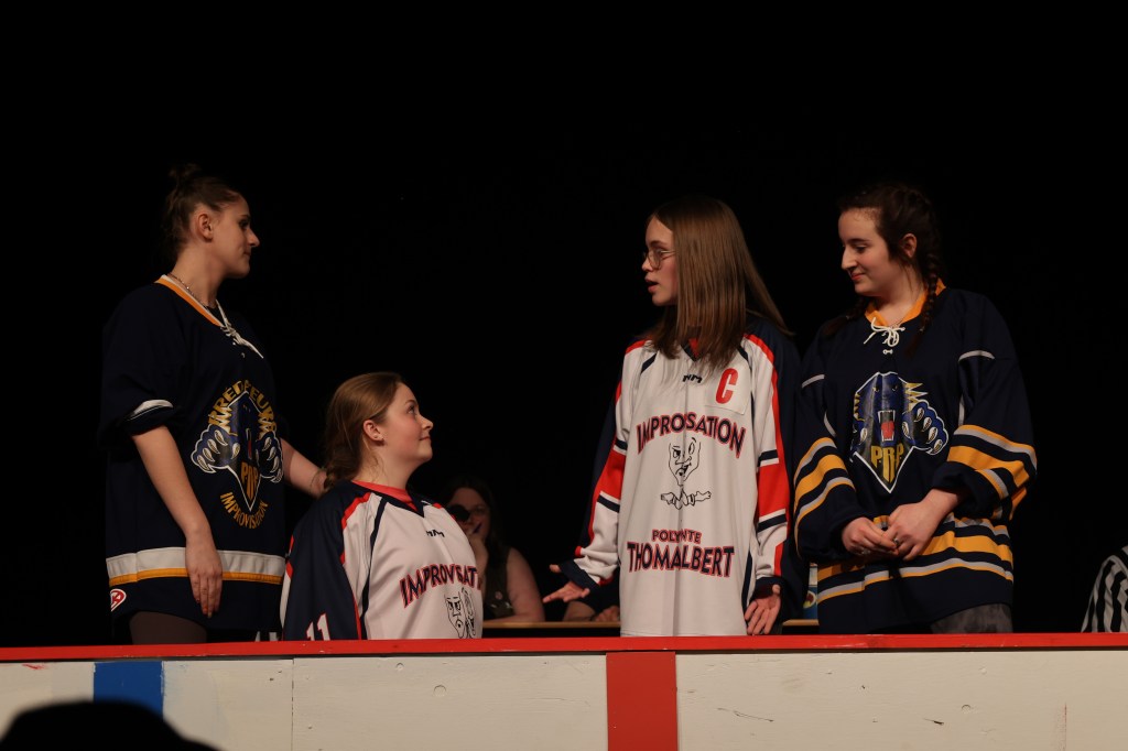 MUSICALE : Cette catégorie demande de la recherche et du travail pour l’arbitre. Lorsqu’elle est annoncée, il y a toujours une grosse réaction du public, mais j’ai vu très peu de vraies bonnes musicales. Soit qu’on présente une impro sans trop suivre la musique, ou on se met à danser, ou il n’y a pas vraiment d’histoire comme tel. Mon opinion peu populaire, c’est que la musicale est overrated = C!