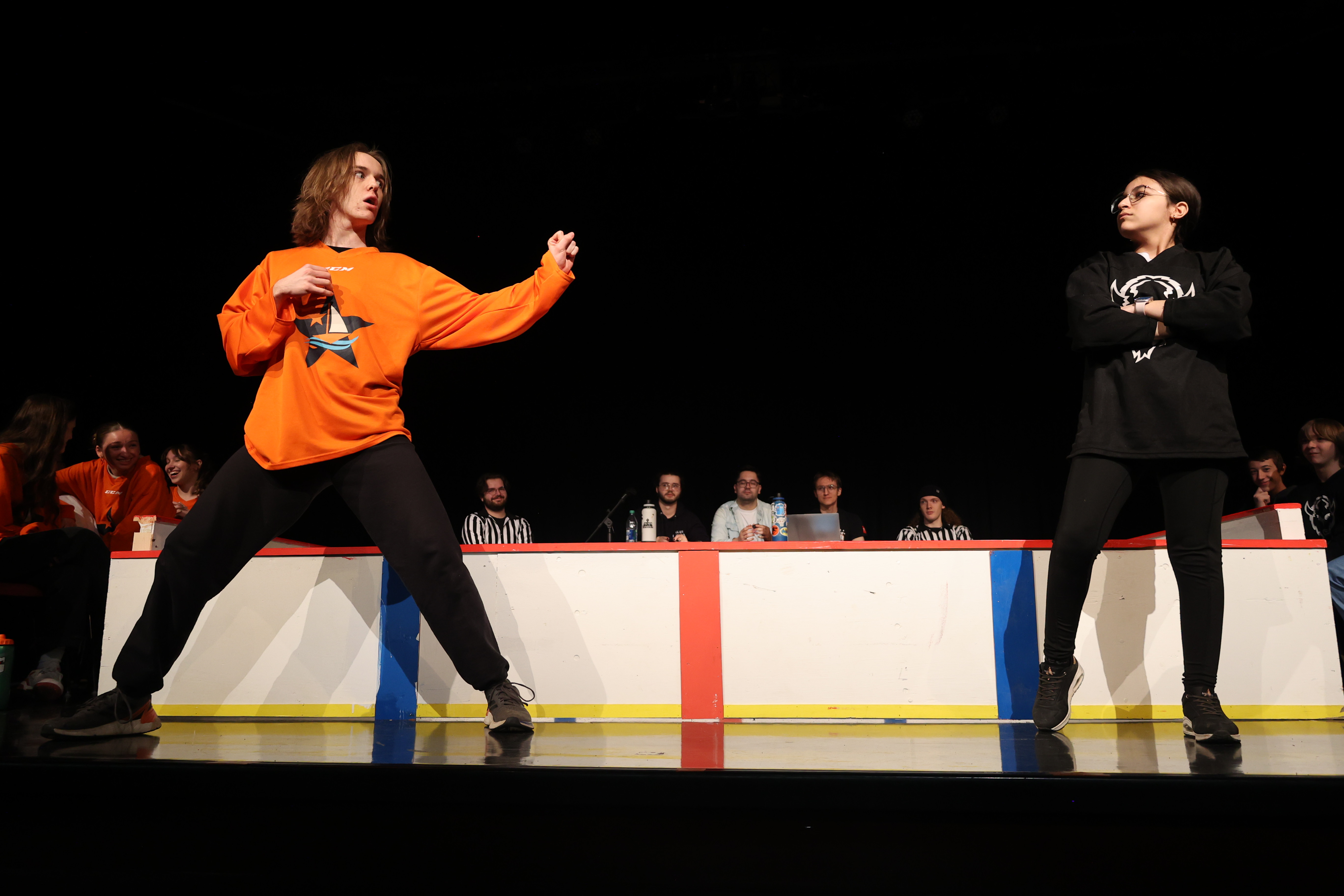 SANS SONS : Sur la même ligne que la sans paroles, la sans sons met aussi l’accent sur le jeu physique, mais sans bruit. Le défi est d’assurer que l’histoire progresse et est assez claire pour que le public capte ce qui se passe. Personnellement, je crois que le potentiel est grand, mais que la capacité de porter une attention continue à une arène où on ne doit pas faire de bruit la rend trop peu appréciée du public. Je crois qu’elle mérite tout de même une place sous C.