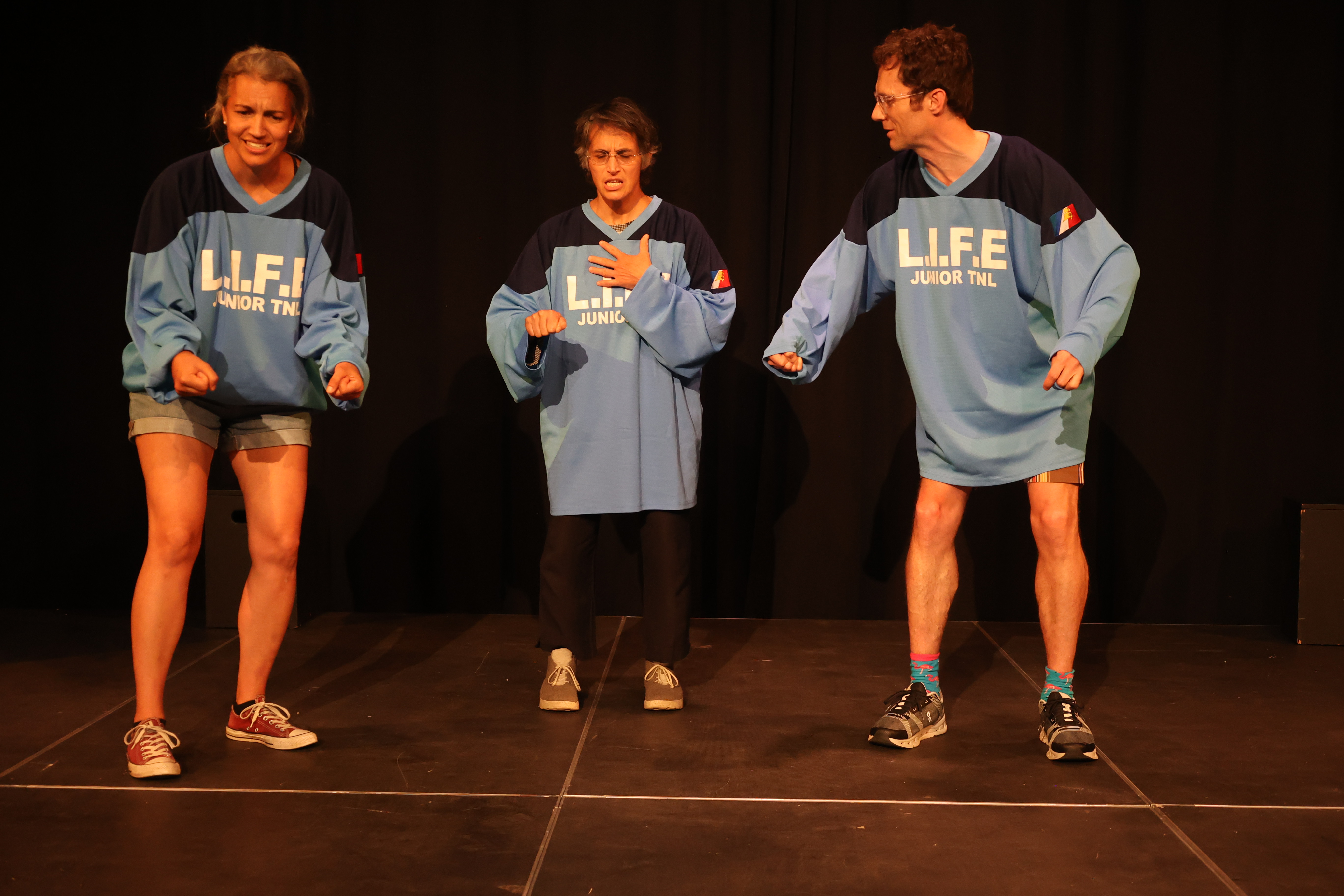 Dans un exemple plus pratique, sans twist ni métaphore, l’élément télépathique pourrait être un plan d’impro. Par exemple, on nous a imposé une improvisation sur un train, et en caucus, une équipe de fans du film Titanic décide d’utiliser celui-ci comme modèle. Bien que les joueurs changent les détails (les noms, n’utilisent pas un diadème, et ne font pas les clichés comme se tenir à l’avant du train), ils comprennent, entre eux, où ça peut/devrait aller, surtout quand ils viennent à court d’idées. On sait qu’un déraillement s’en vient, que le mari jaloux essaiera de s’en sauver, qu’il y a une danse dans la caboose, etc. On ne le dit pas au public – qui réalisera ou non – mais entre nous, on semble plus se suivre, plus se nourrir, et essentiellement, montrer de la CHIMIE.