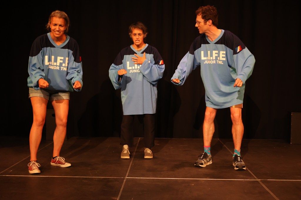 L’élément télépathique n’a pas toujours besoin de créer un « twist ». Il peut faire référence à un sous-texte qui active l’imagination du public et le mène à débattre ce qui se passait vraiment. Par exemple, imaginons une improvisation qui, à la surface, se passe sur la plage. Les parents nagent, pas de problème, mais ne laissent pas leurs enfants nager. En fait, le père n’aime pas que la mère aille nager toute seule. Éventuellement, elle ou les enfants fougueux décident d’aller nager et ne reviennent jamais. Ce qu’on ne sait pas – et qui ne devrait jamais être dit au public – c’est qu’en caucus, l’équipe a décidé que son impro serait une métaphore pour « voler de ses propres ailes » (ou, enfin, « nager de ses propres nageoires »), et les joueurs découvrent, organiquement peut-être, l’intérêt de rendre le patriarche toxique et restrictif par rapport à son épouse. Elle est « prisonnière » de la plage (du couple) tout comme les enfants le sont (de l’unité familiale ou sur-protection parentale). Ils laissent la métaphore – le sous-texte – les guider dans leurs décisions, et résistent l’envie de révéler tout ceci au public. Après le match, ils sont enchantés d’entendre des membres du public leur dire « hey, j’ai vraiment aimé votre impro sur l’émancipation de la femme/des enfants » ou même « votre impro sur le fascisme » parce qu’ils y ont vu une AUTRE couche que l’ambiguïté a accidentellement créée.