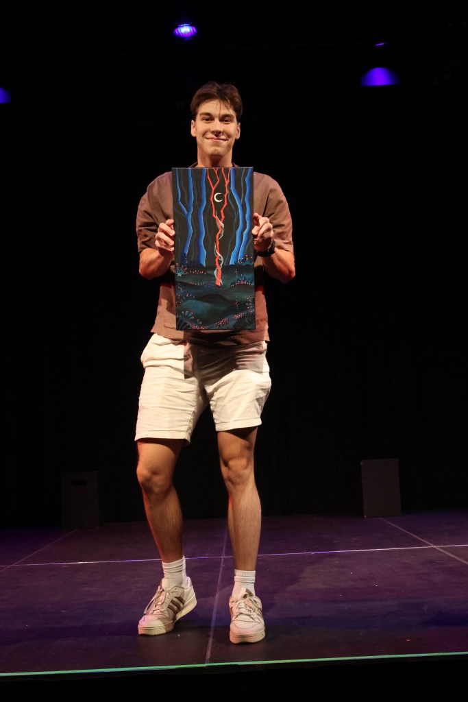On termine le tout avec une remise de prix! Un gros merci à Josée Robichaud, l’artiste qui a créé les œuvres présentées aux lauréat.e.s!