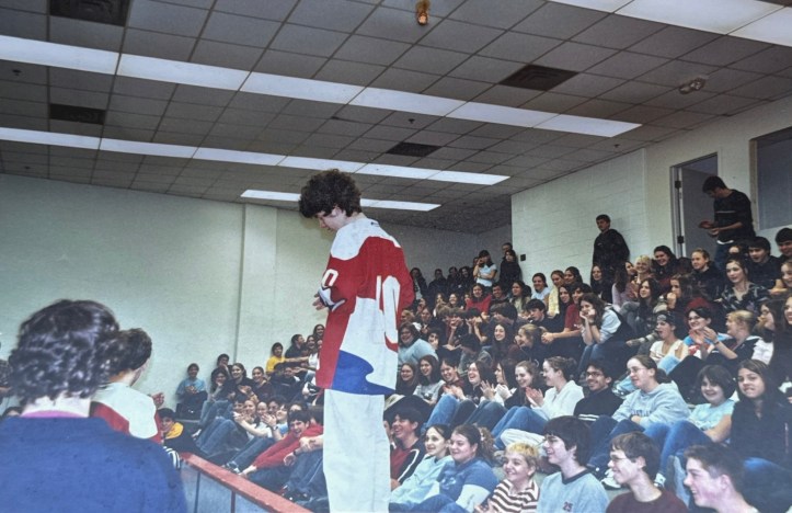Pour moi, le secondaire fut une période parfois très difficile. Beaucoup de stress, beaucoup d’intimidation… jusqu’au jour où je me suis joint à la troupe d’impro. Comme je suis arrivé en milieu de saison, M. Hédou m’a défié de participer à un match au mythique D-104, un vendredi sold out. Challenge accepted. Même si mon corps en entier était en mode panique. Me voilà donc devant plus de 100 personnes, incluant certains de mes bullies, et l’arbitre lit son carton :