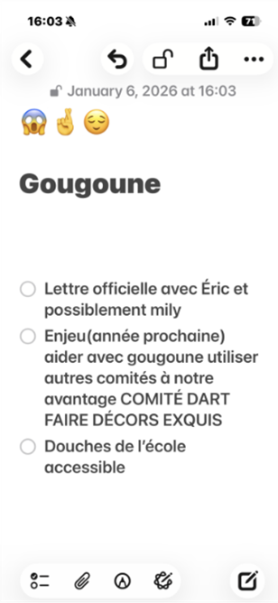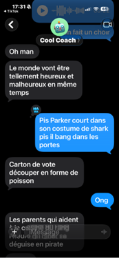 Vous comprendrez que j’étais tellement dédiée que je restais 12 heures à l’école chaque mardi, sans compter que je faisais partie de la plupart des comités de l’école. C’est moi qui m’occupais de créer les annonces et les matchs d’impro. Je m’occupais aussi des levées de fonds, puisque ma bête noire, c’est qu’il ne reste plus d’argent dans notre compte.