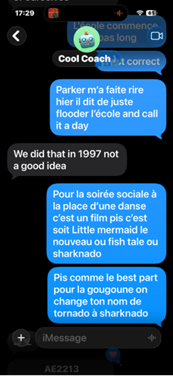 Un peu après ça, j’ai reçu un message-texte dudit défunt coach qui disait, et je cite : « Je reviens back et on va être l’équipe hôtesse de la Gougoune 2025. » J’ai bien fait d’embarquer Parker dans le coup!