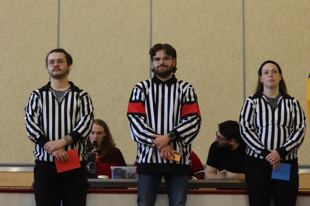 Alors vous avez fait votre Volet 1 qui explore les bases de l’arbitrage et vous êtes à jour sur votre Volet 2 (doit être suivi au moins aux deux ans) qui assure la préparation aux tournois de l’année en cours, mais vous ne pouvez être accrédité comme arbitre en chef que si vous complétez votre Volet 3 – le soi-disant « stage ». Le processus est relativement simple – on est soi-même responsable de se trouver un match à arbitrer. ImproNB est responsable de trouver un évaluateur dans votre région (un arbitre déjà accrédité). L’évaluateur vous suit dans tous les aspects – révise vos thèmes, se joint à l’avant-match, vous regarde arbitrer du public et de la table de stats, vous donne des commentaires – puis envoie son évaluation au Comité exécutif de l’organisme qui décidera soit de vous accréditer, soit de recommander une évaluation supplémentaire.