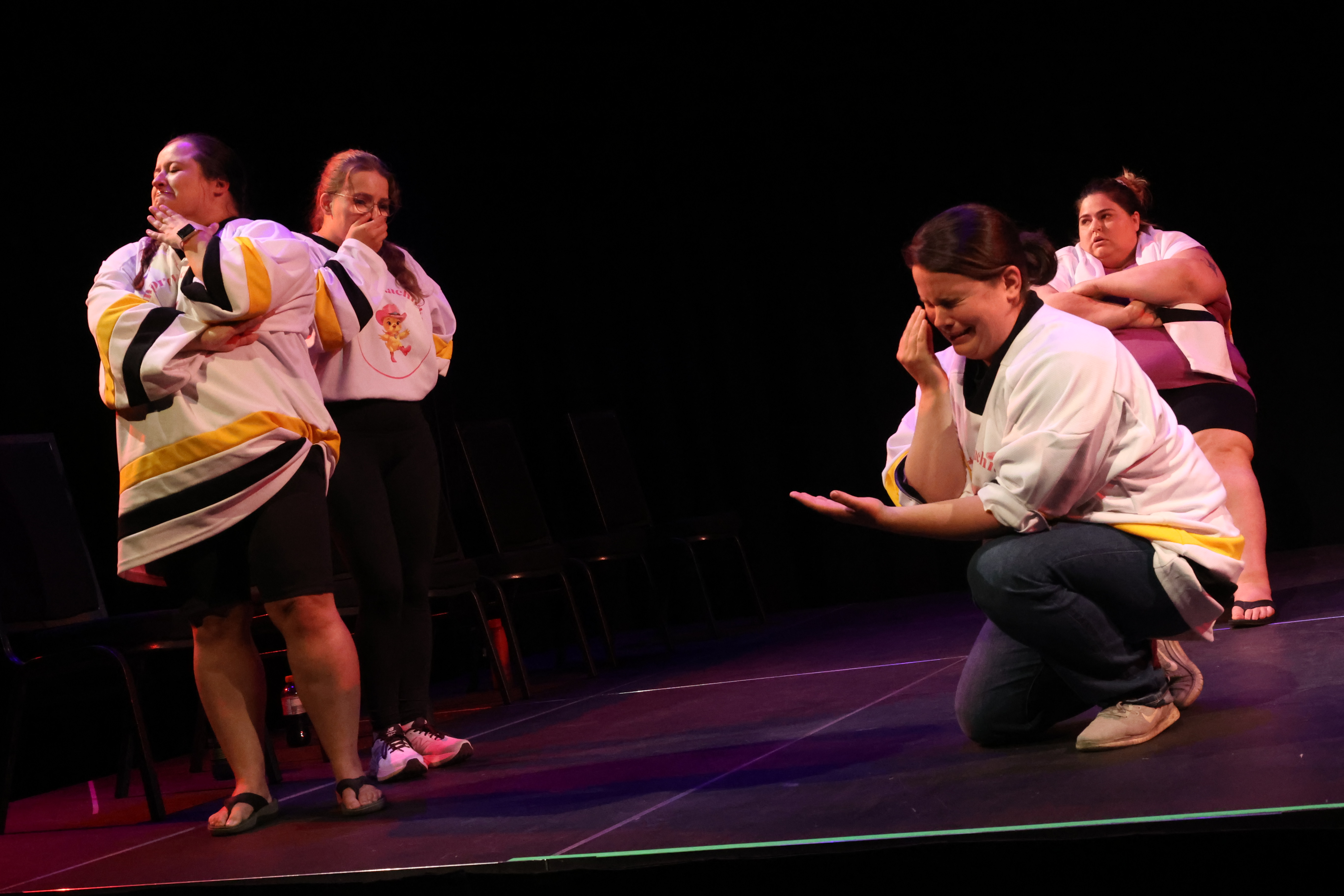Votre caucus était affreux. Personne n’a eu d’idées et pour rendre le tout encore pire, votre équipe a perdu le lancer de la rondelle et vous passez en premier. Ou encore, peut-être que votre caucus était très bon, tellement bon que l’autre équipe a joué votre idée pendant leur comparée avant que vous n’en ayez la chance. C’est dans les millisecondes avant que l’impro commence que les joueurs se regardent avec de la panique dans les yeux et qu’une personne déclare : Suivez-moi!
