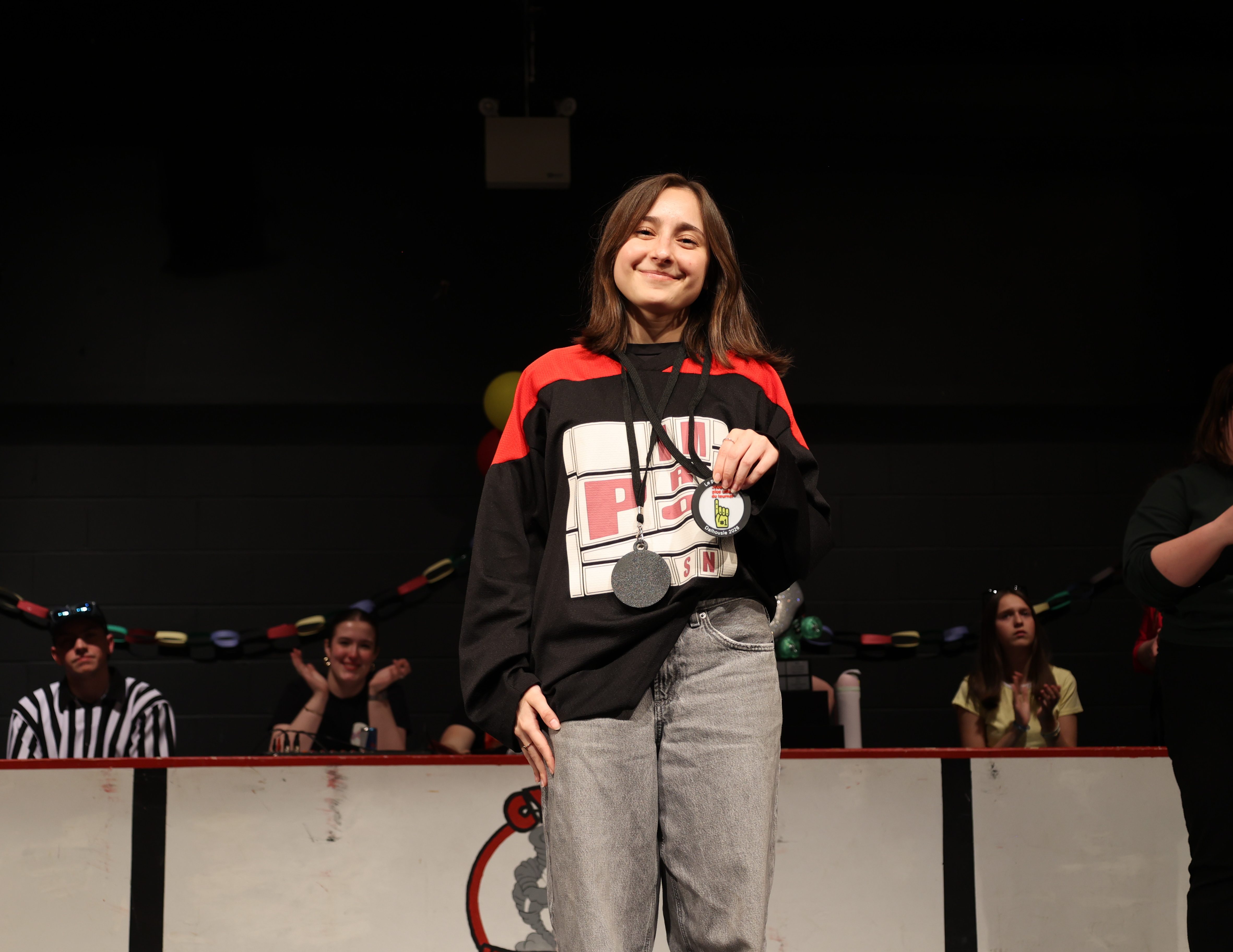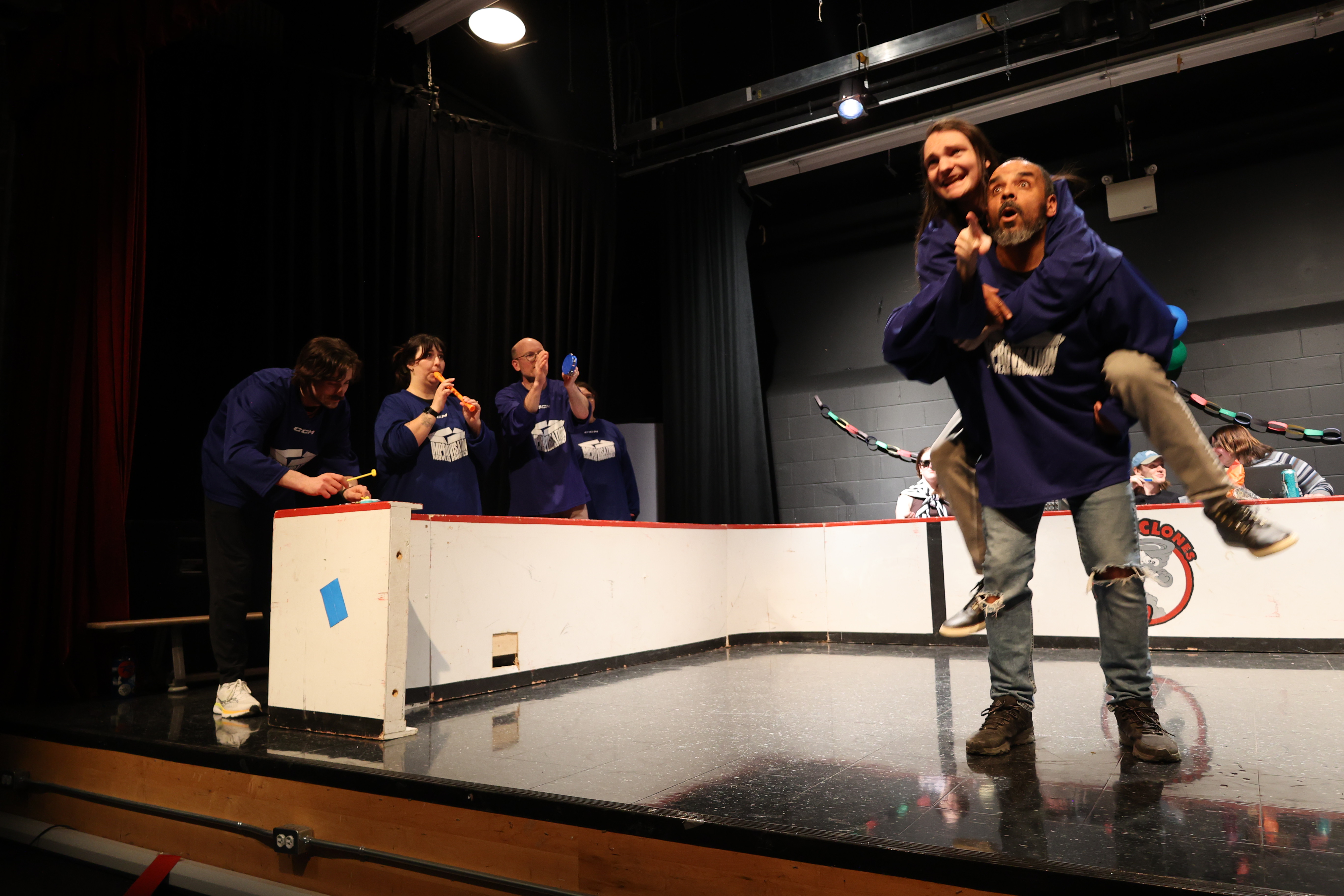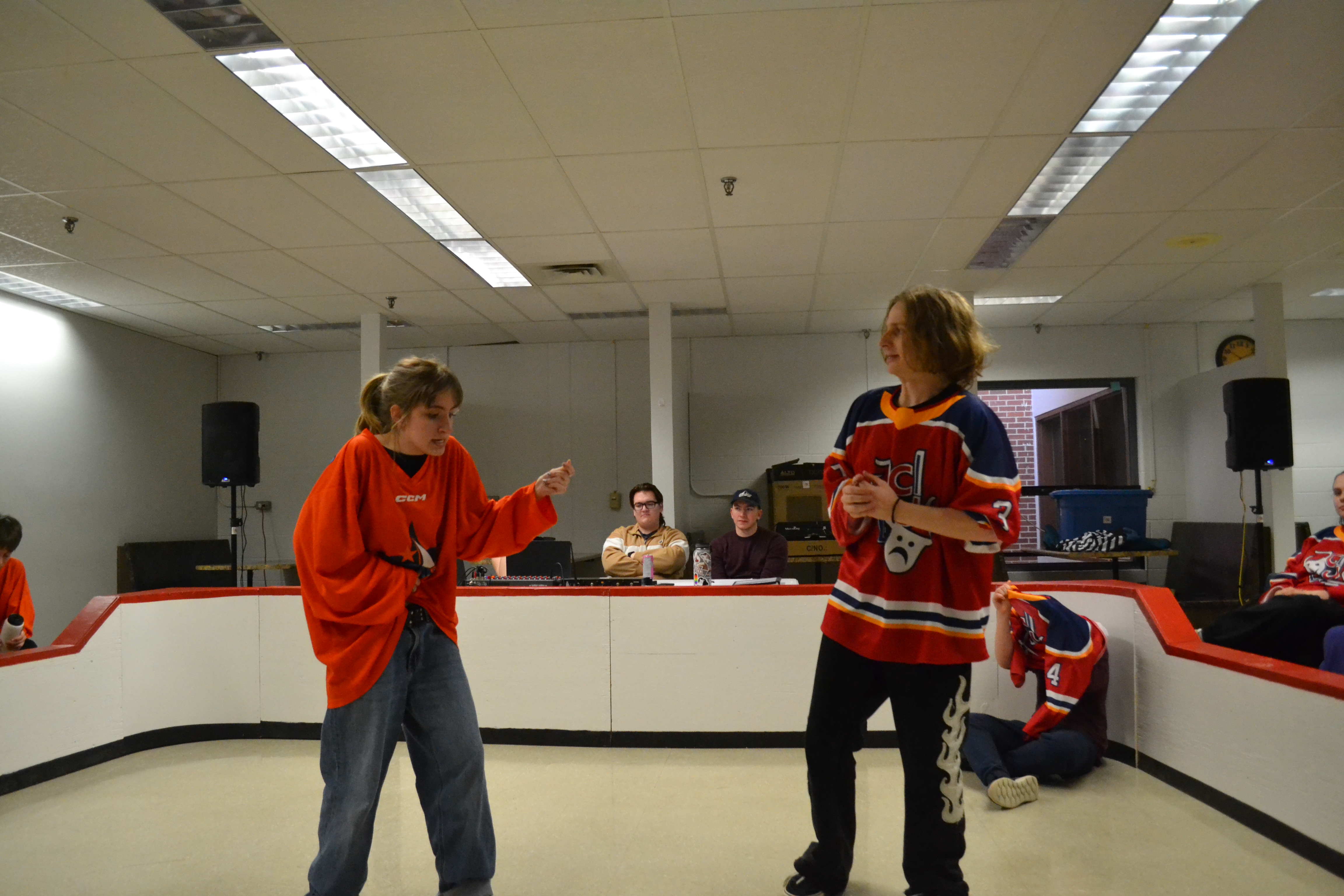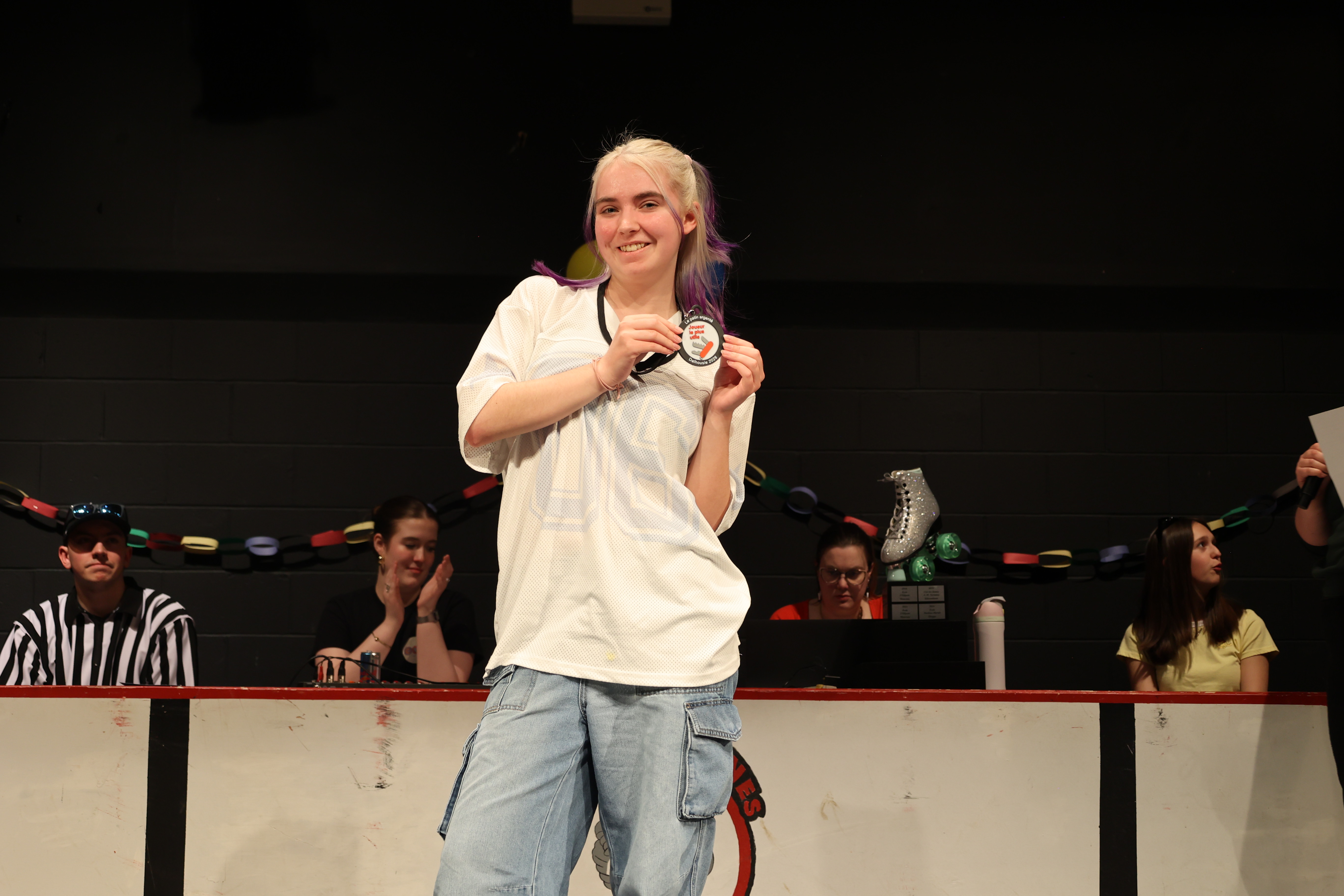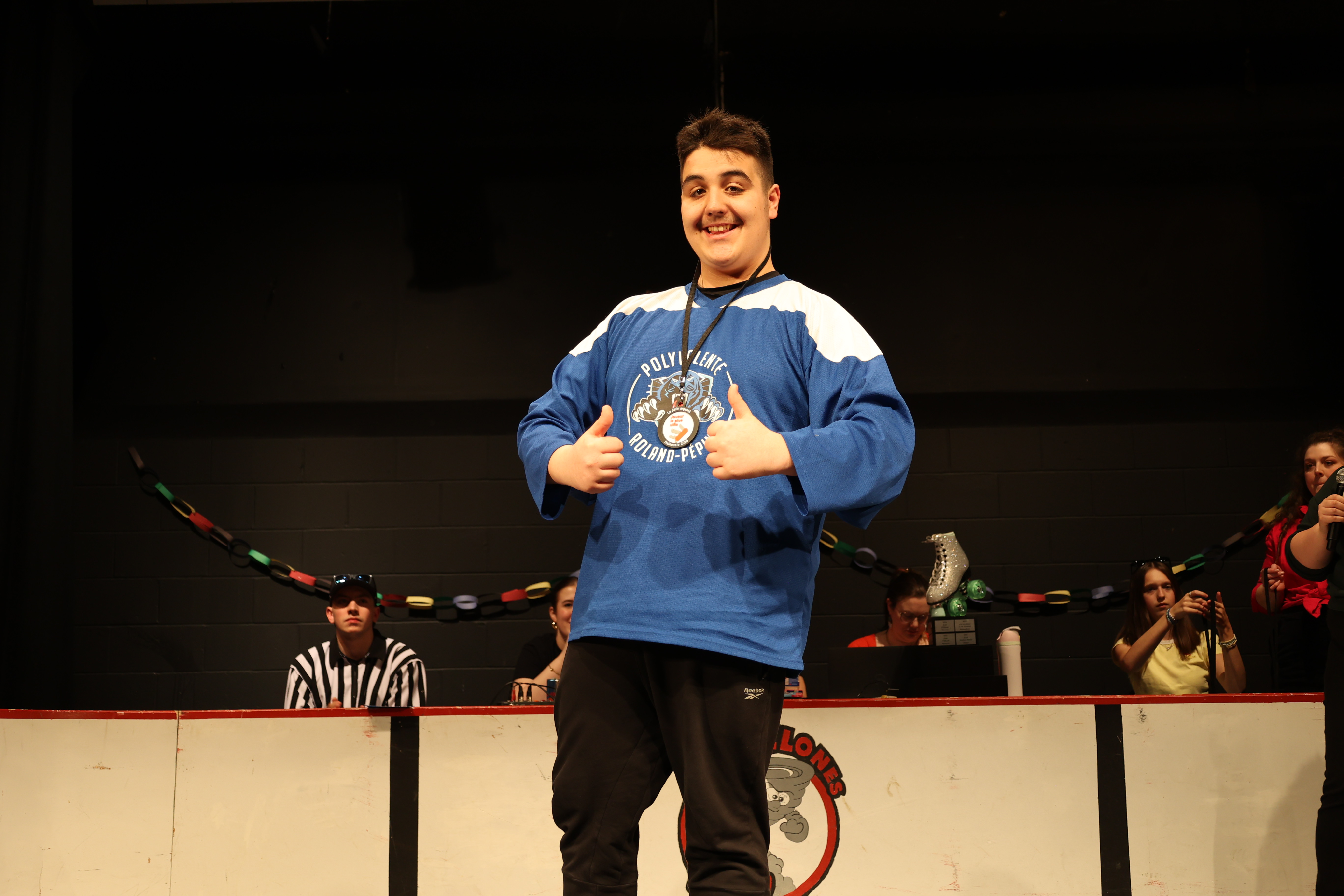 Le samedi soir, des entraîneur.e.s et officiel.le.s ont présenté un match spécial avec défis!