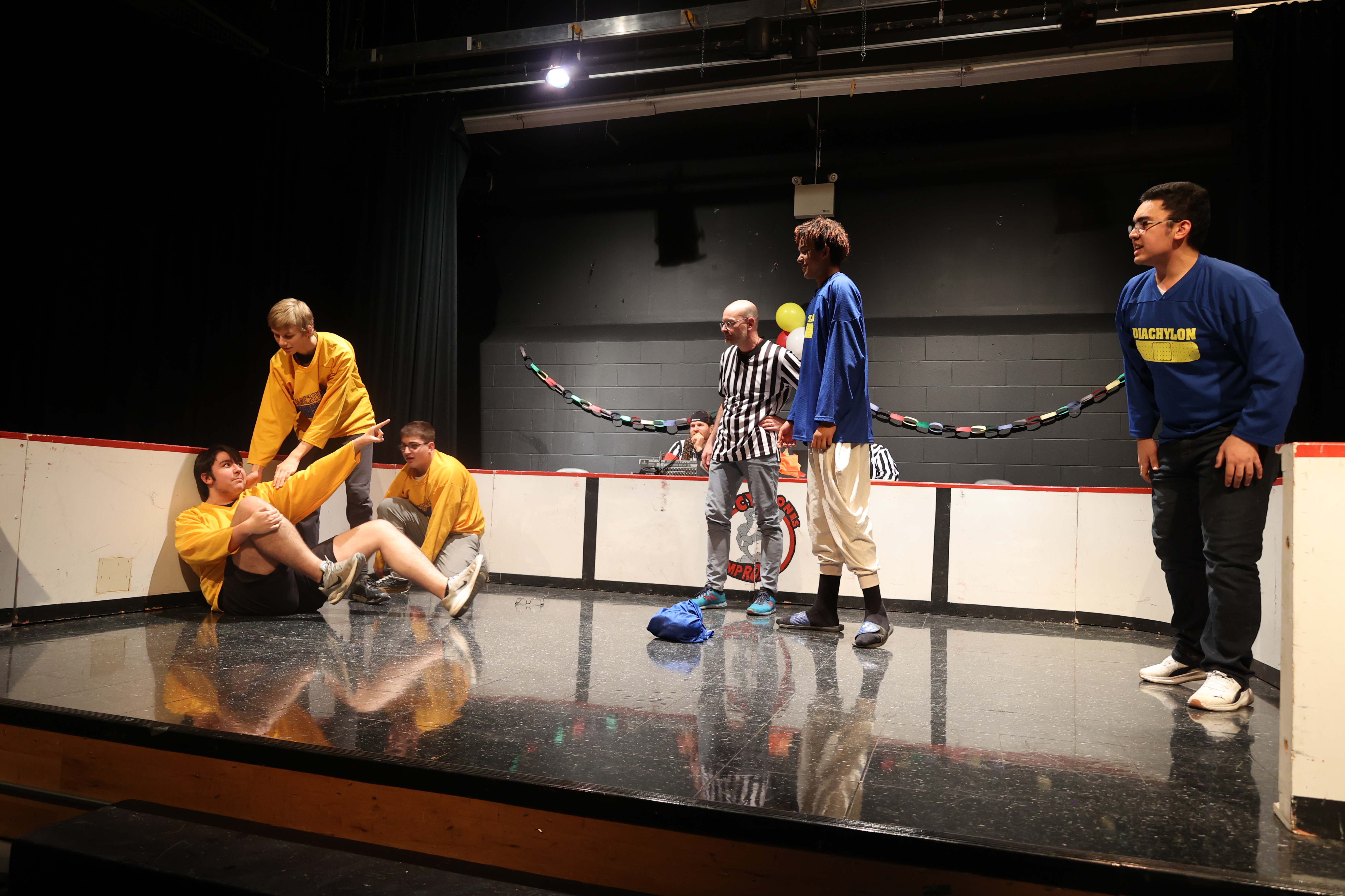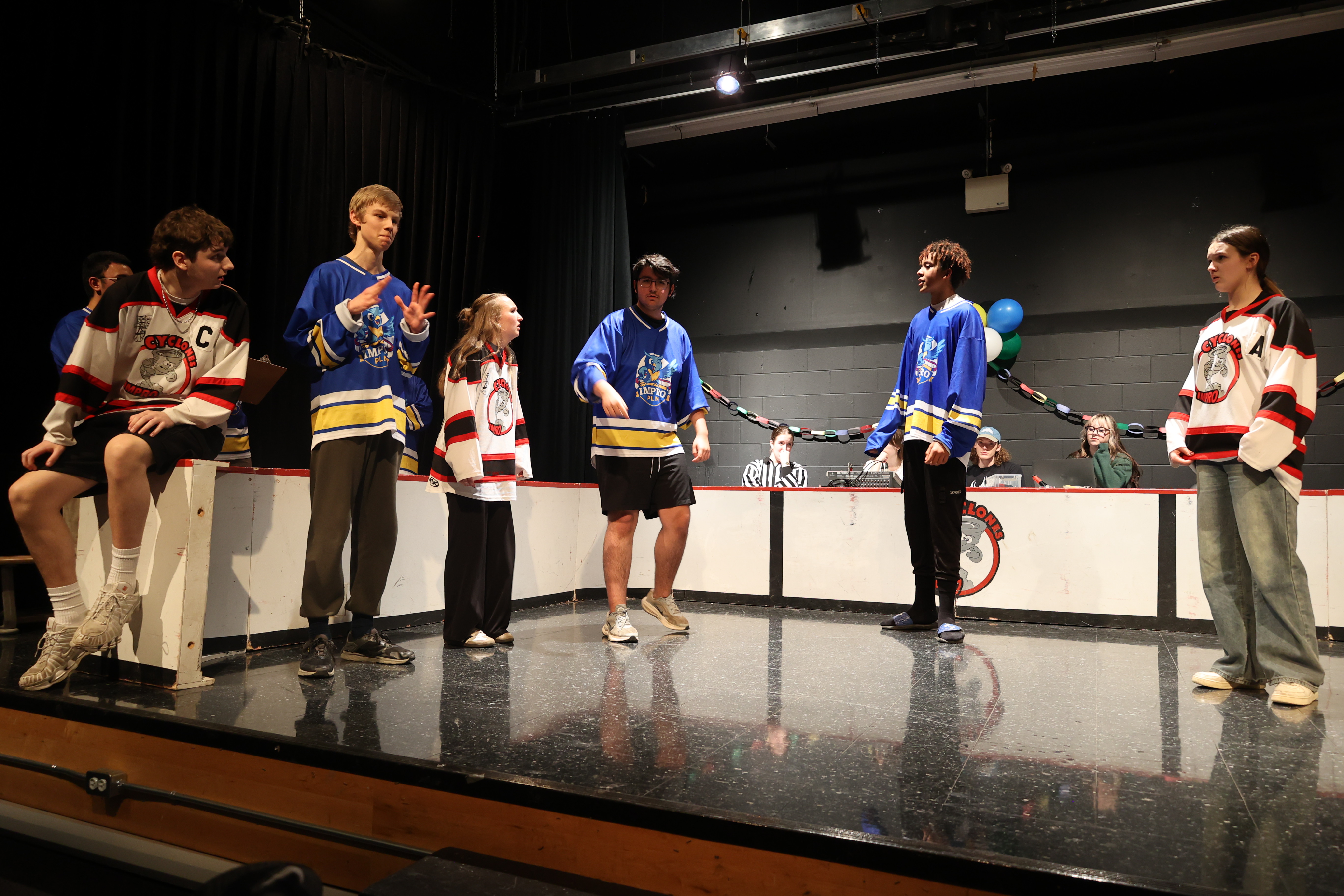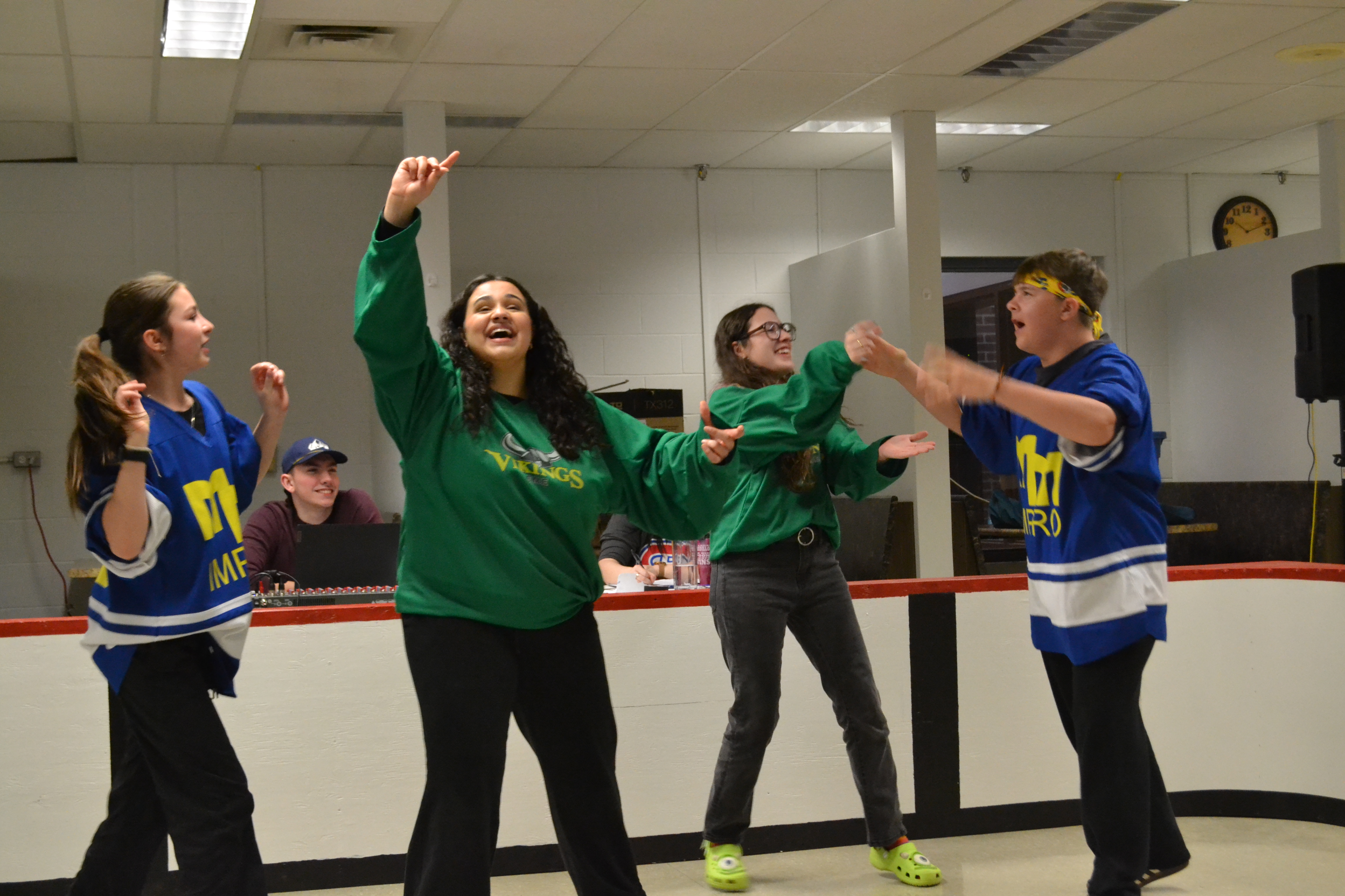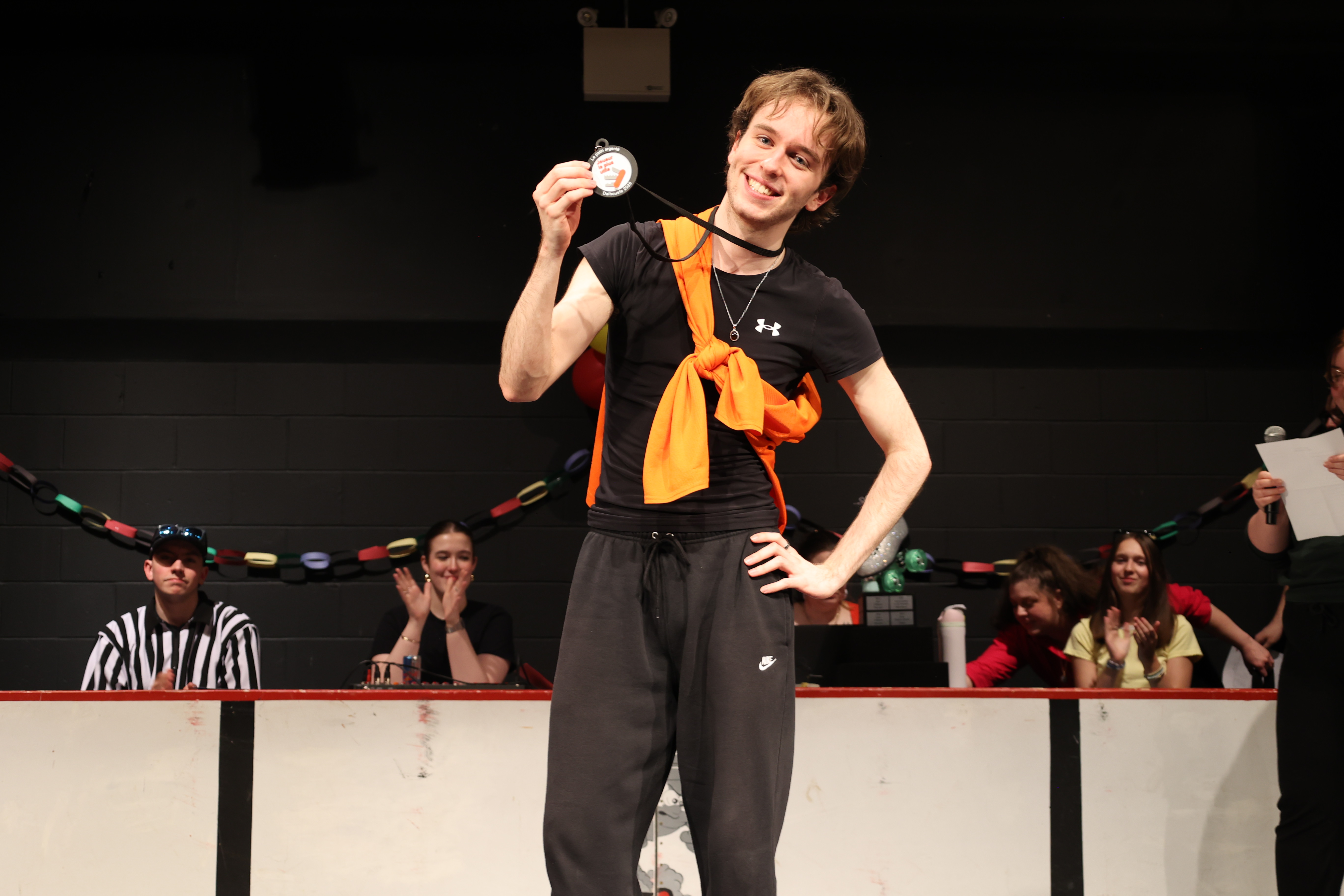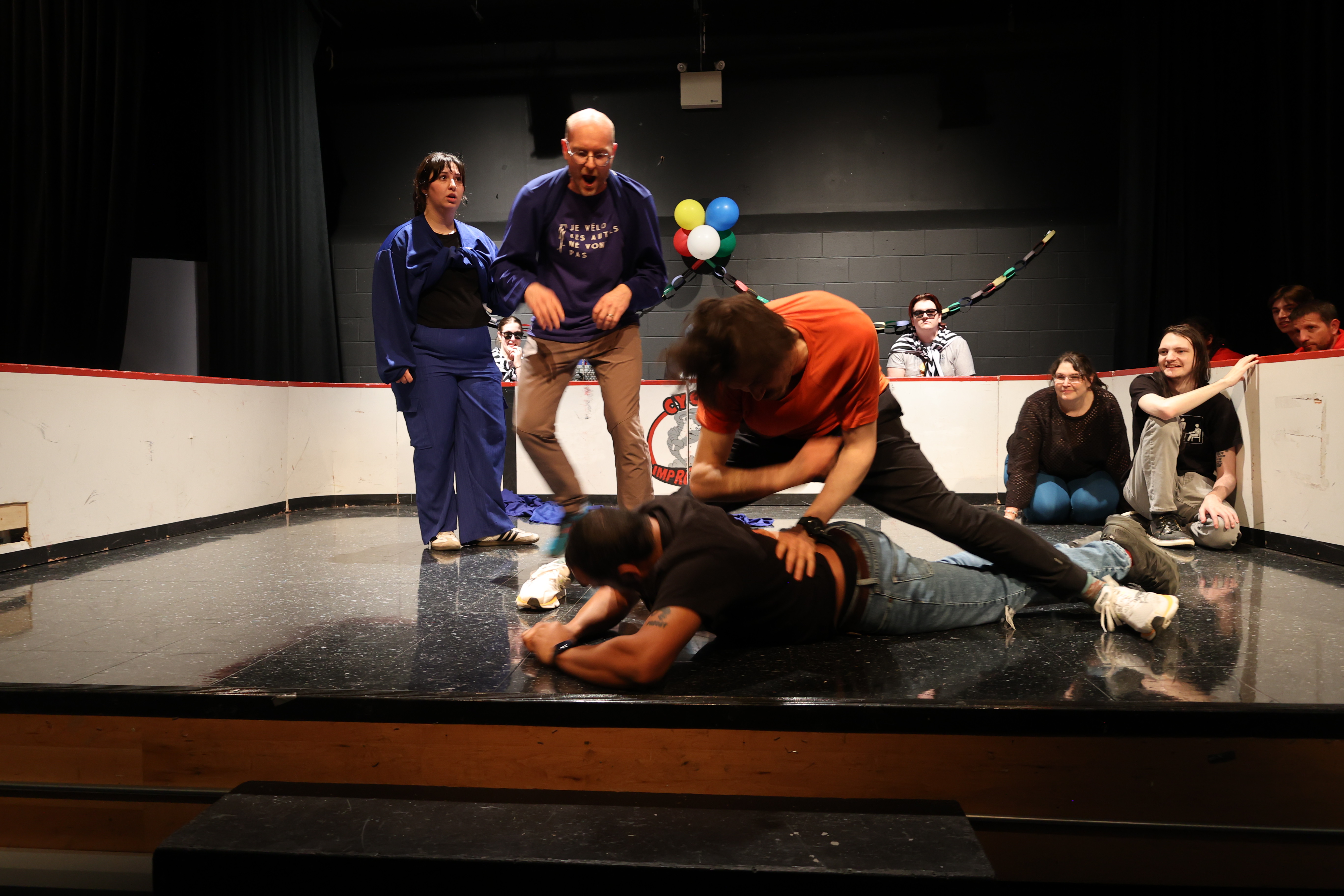 Le samedi soir, des entraîneur.e.s et officiel.le.s ont présenté un match spécial avec défis!