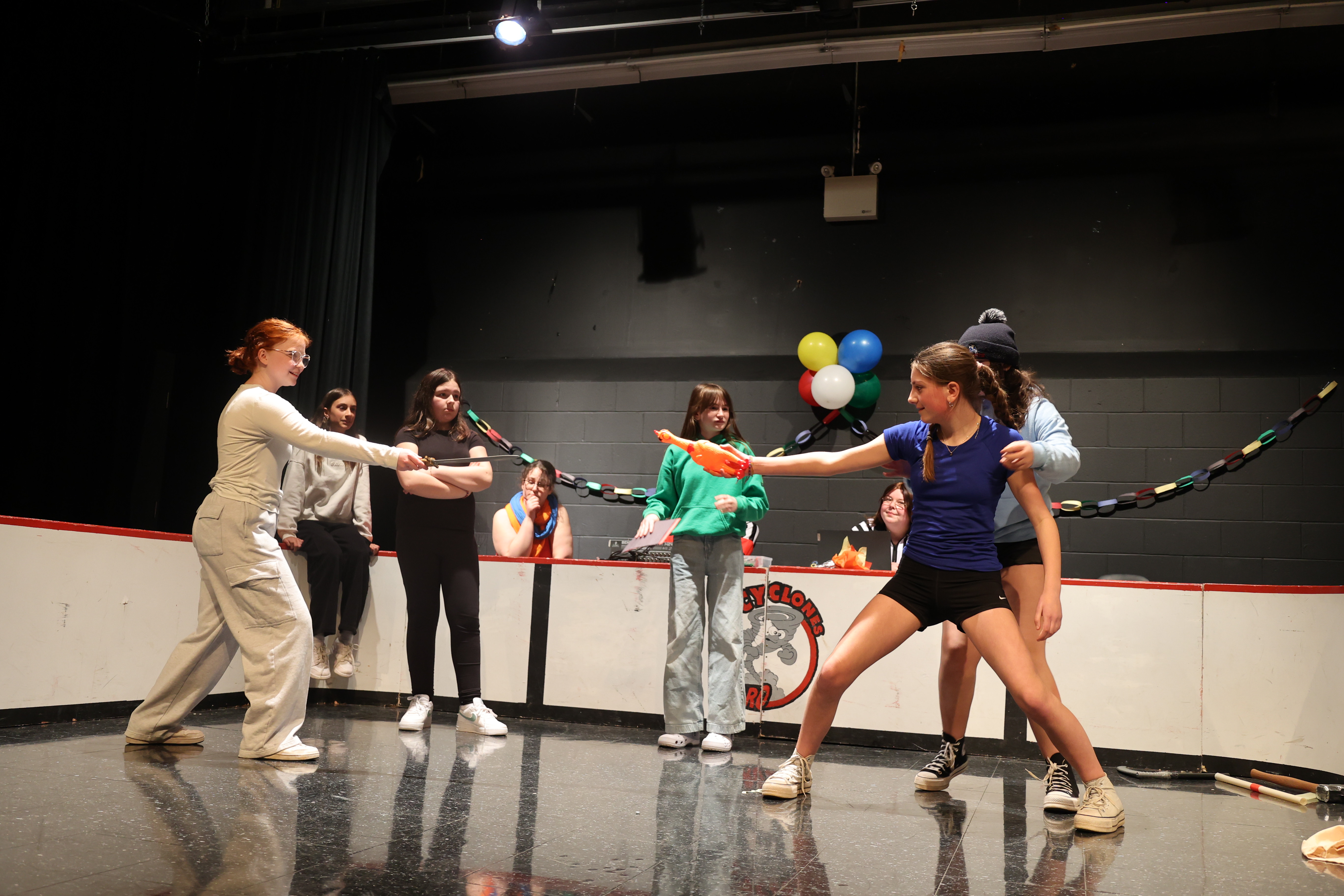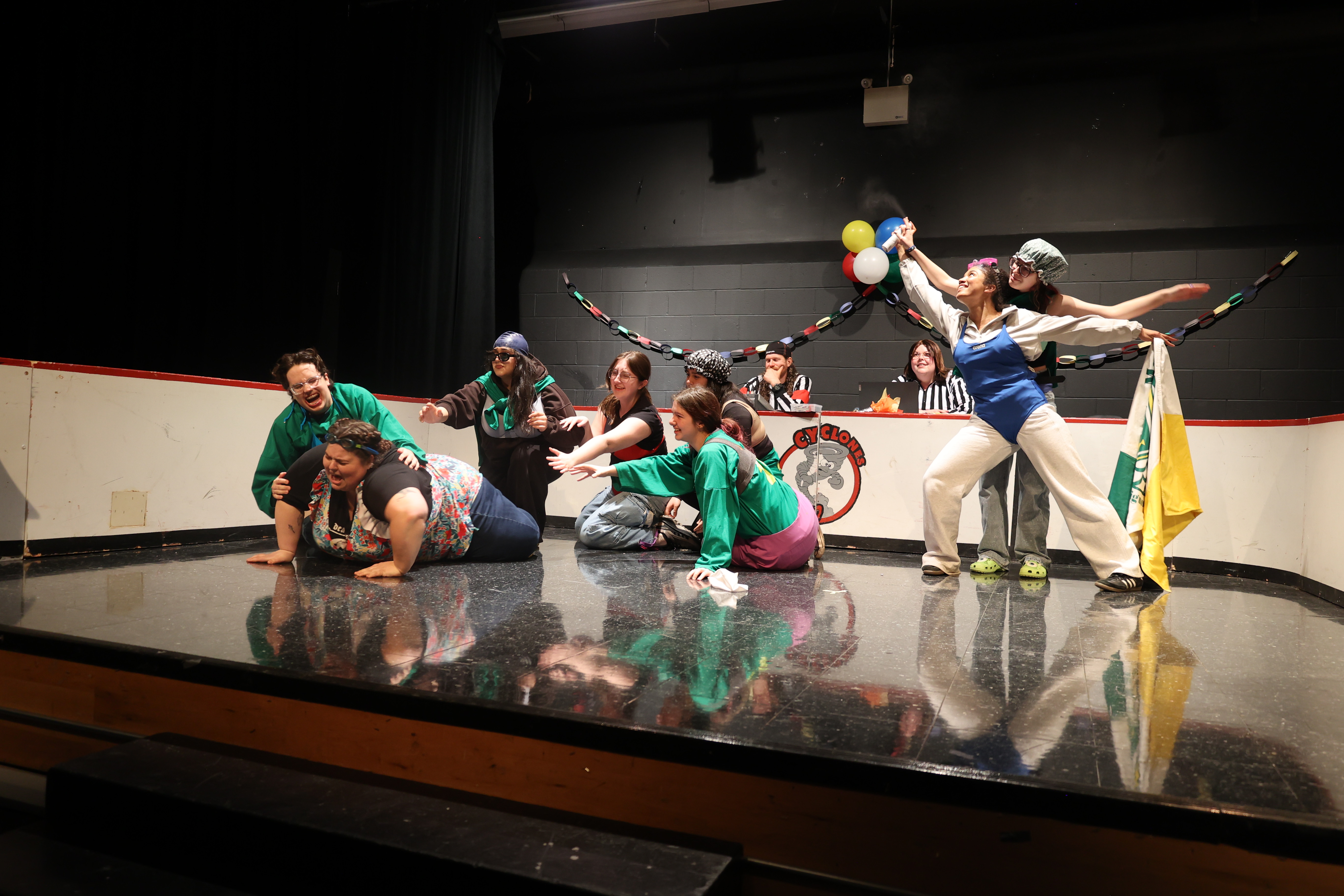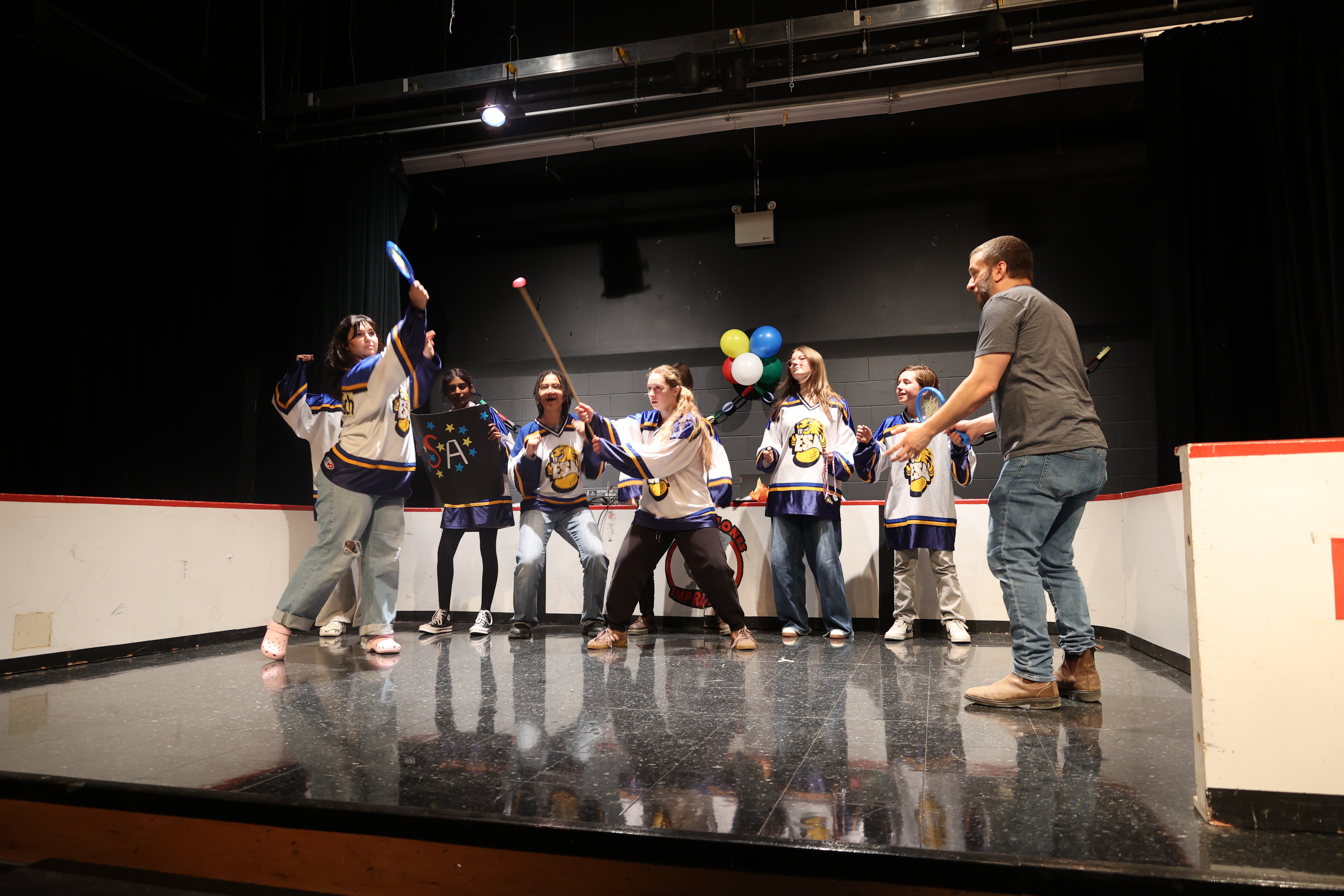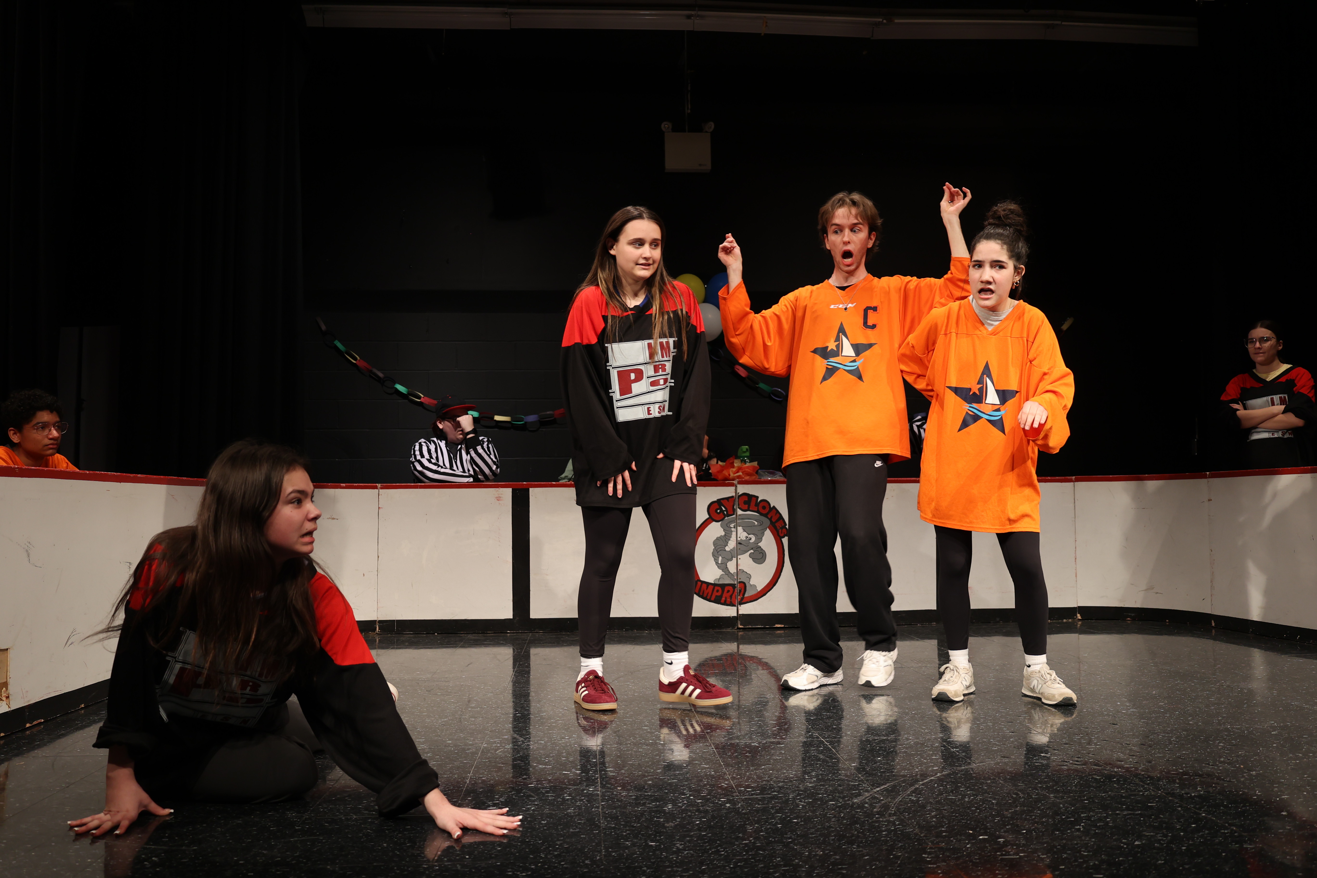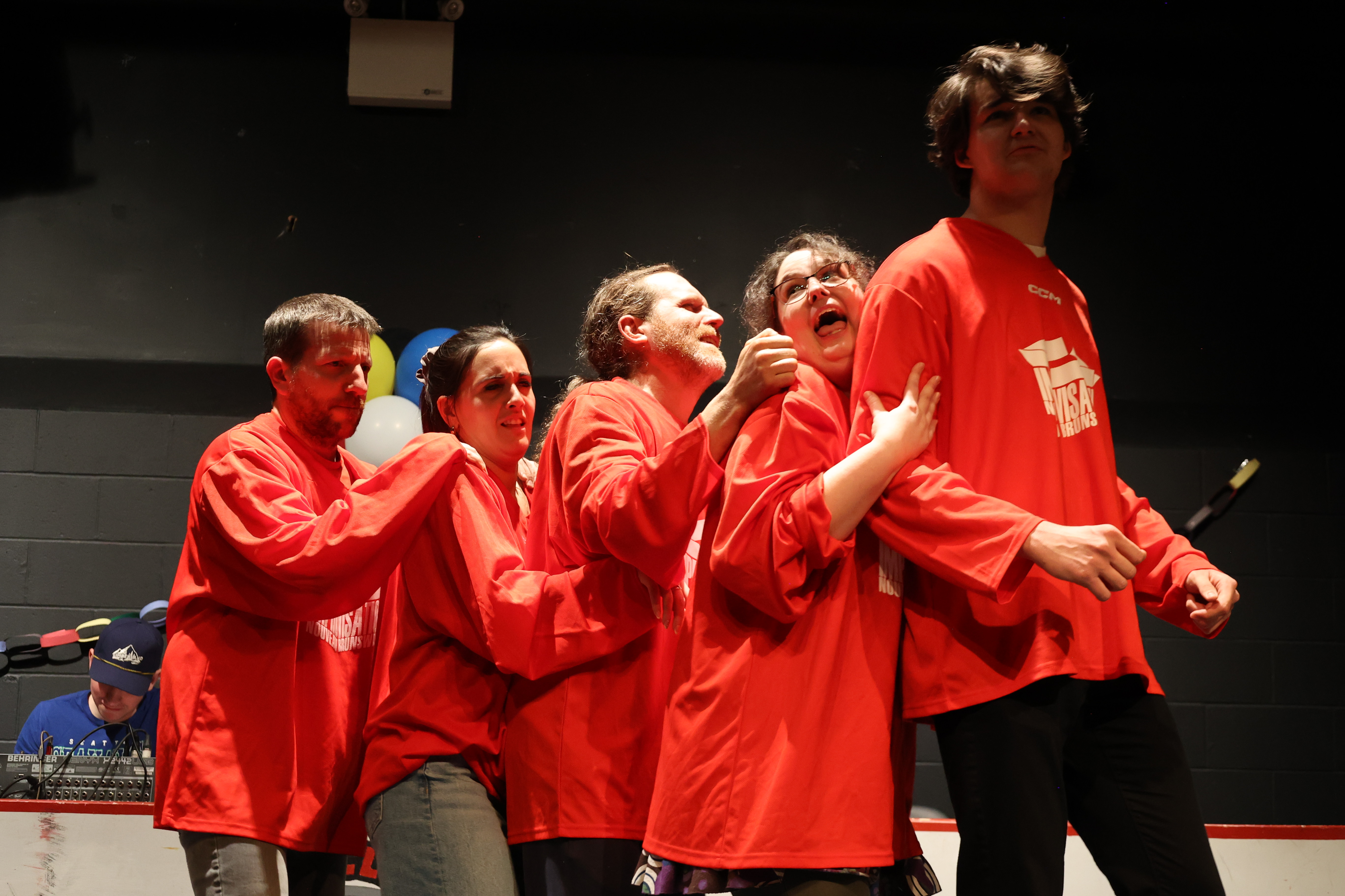 Le samedi soir, des entraîneur.e.s et officiel.le.s ont présenté un match spécial avec défis!