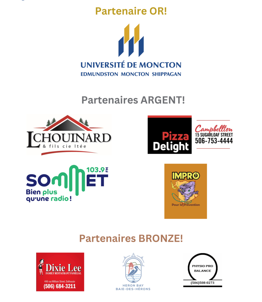 Félicitations aux équipes qui se rendront à la Cité des Jeunes A.-M.-Sormany à Edmundston du 15 au 17 mai pour le Championnat provincial d’improvisation « La Gougoune Dorée » :
