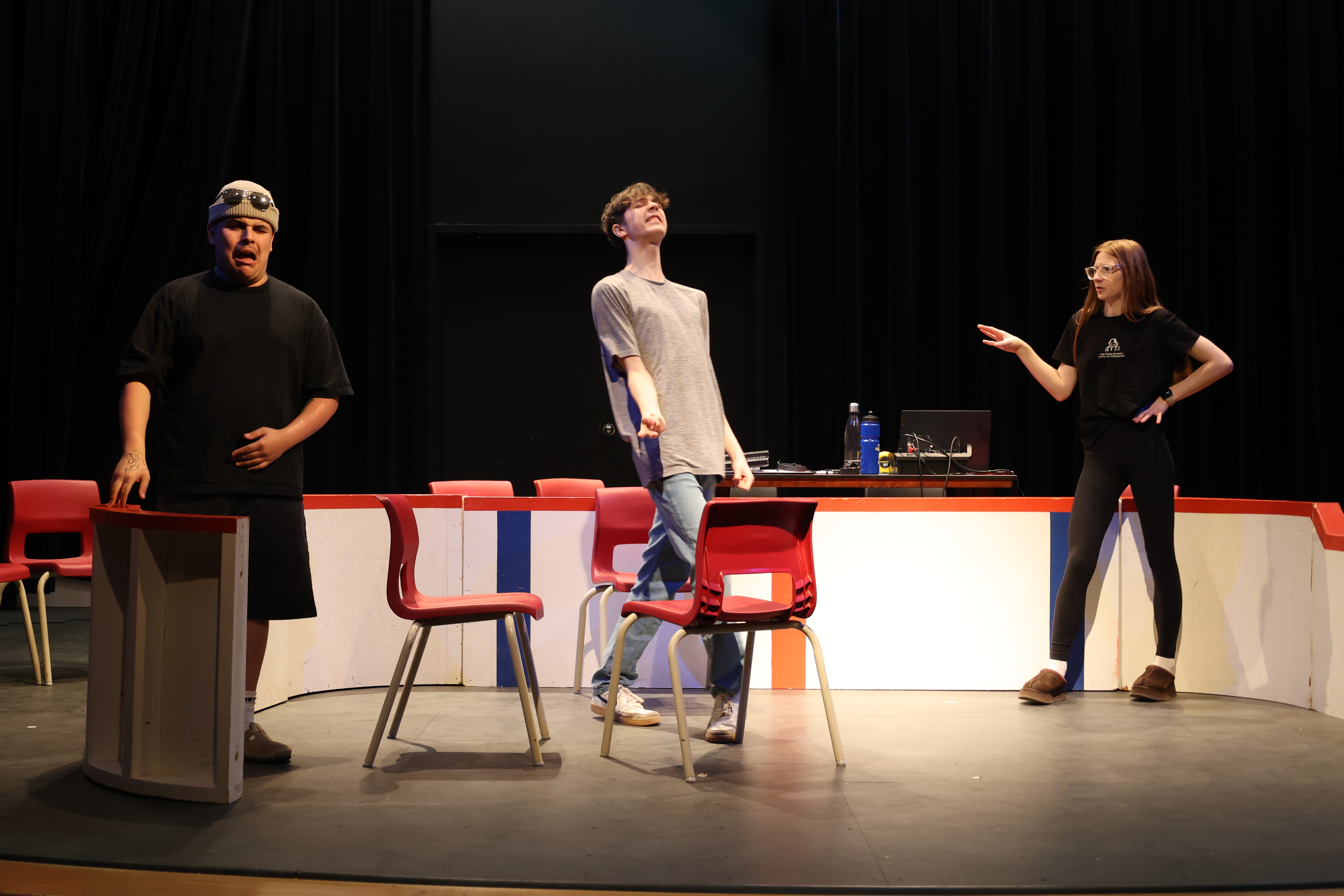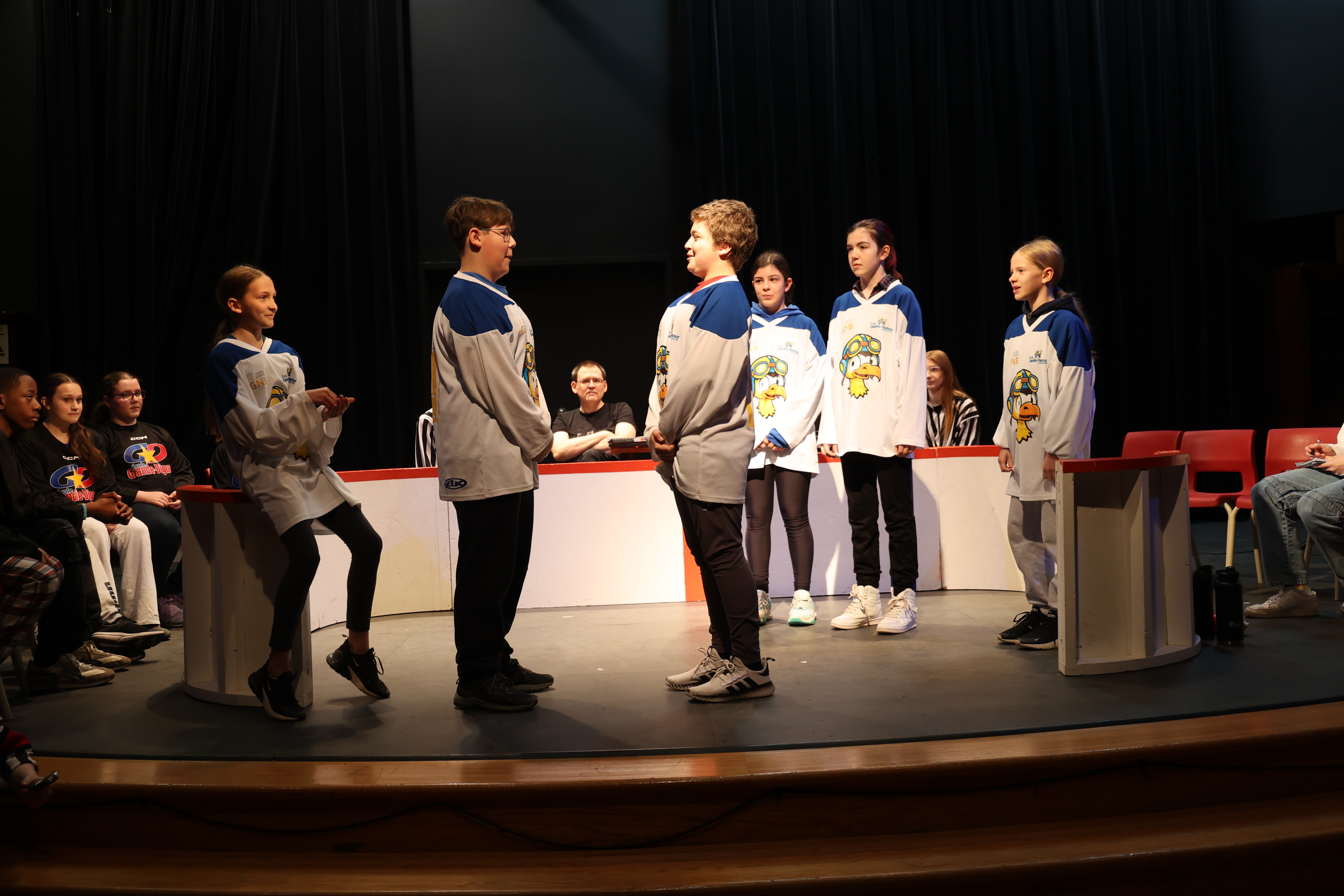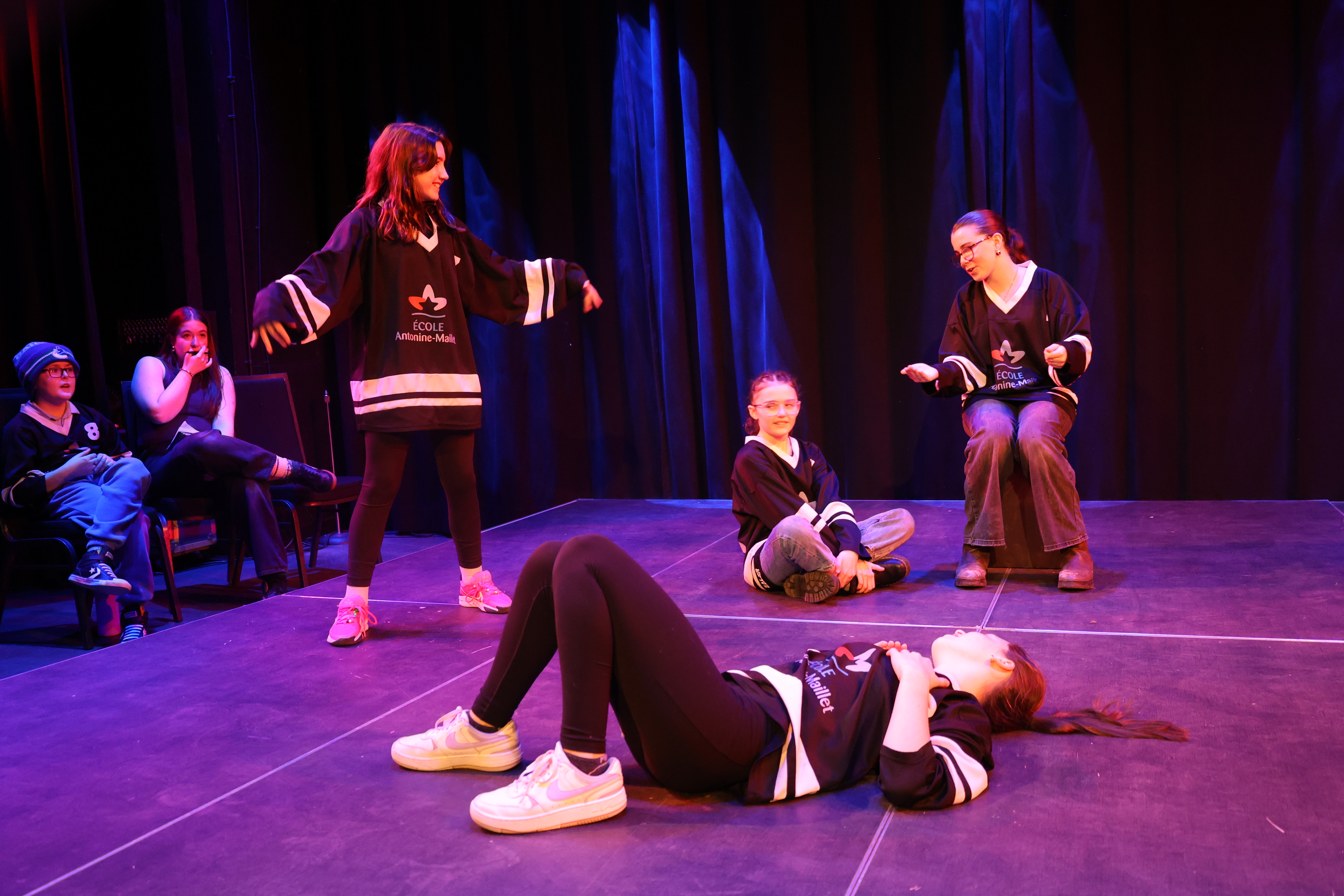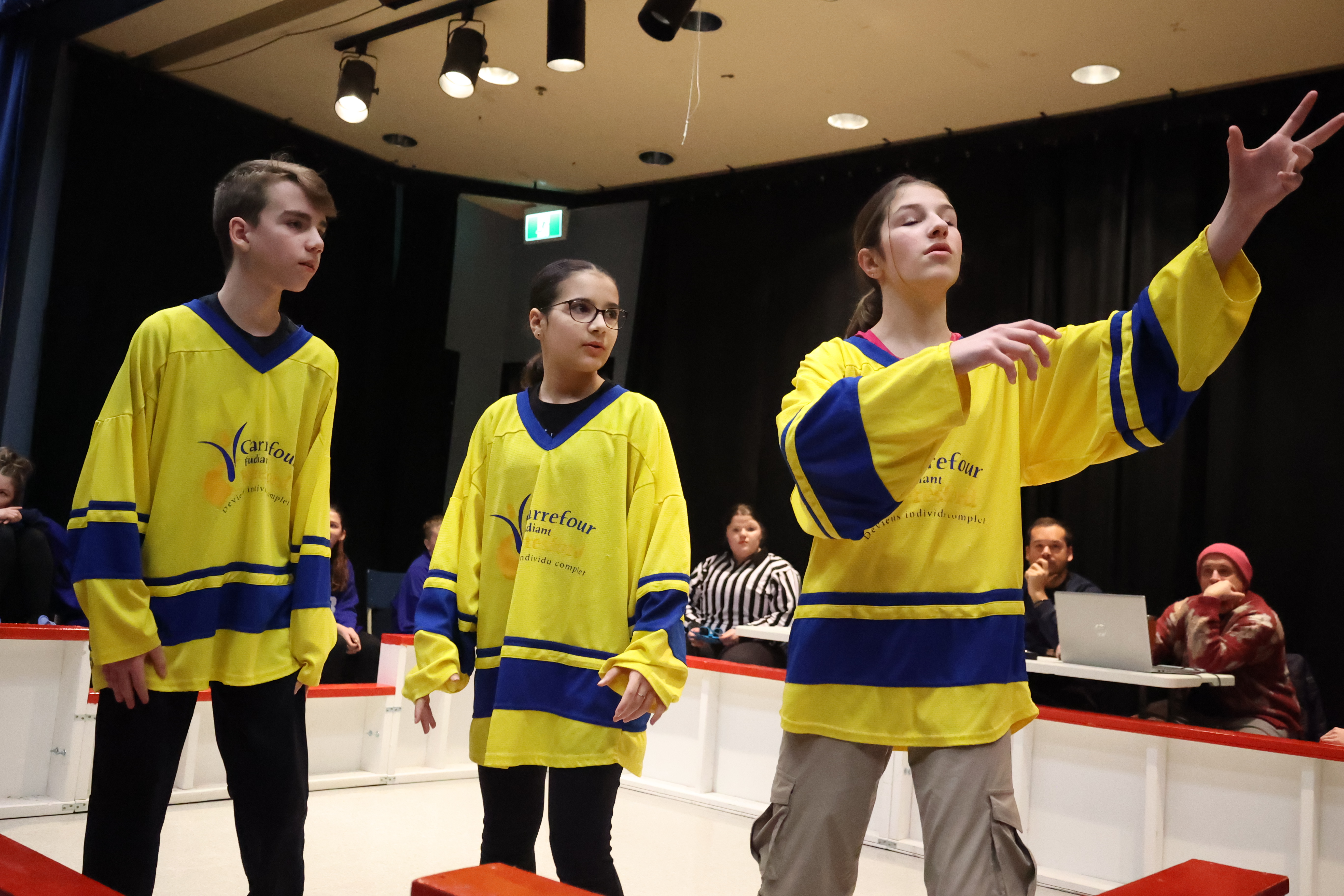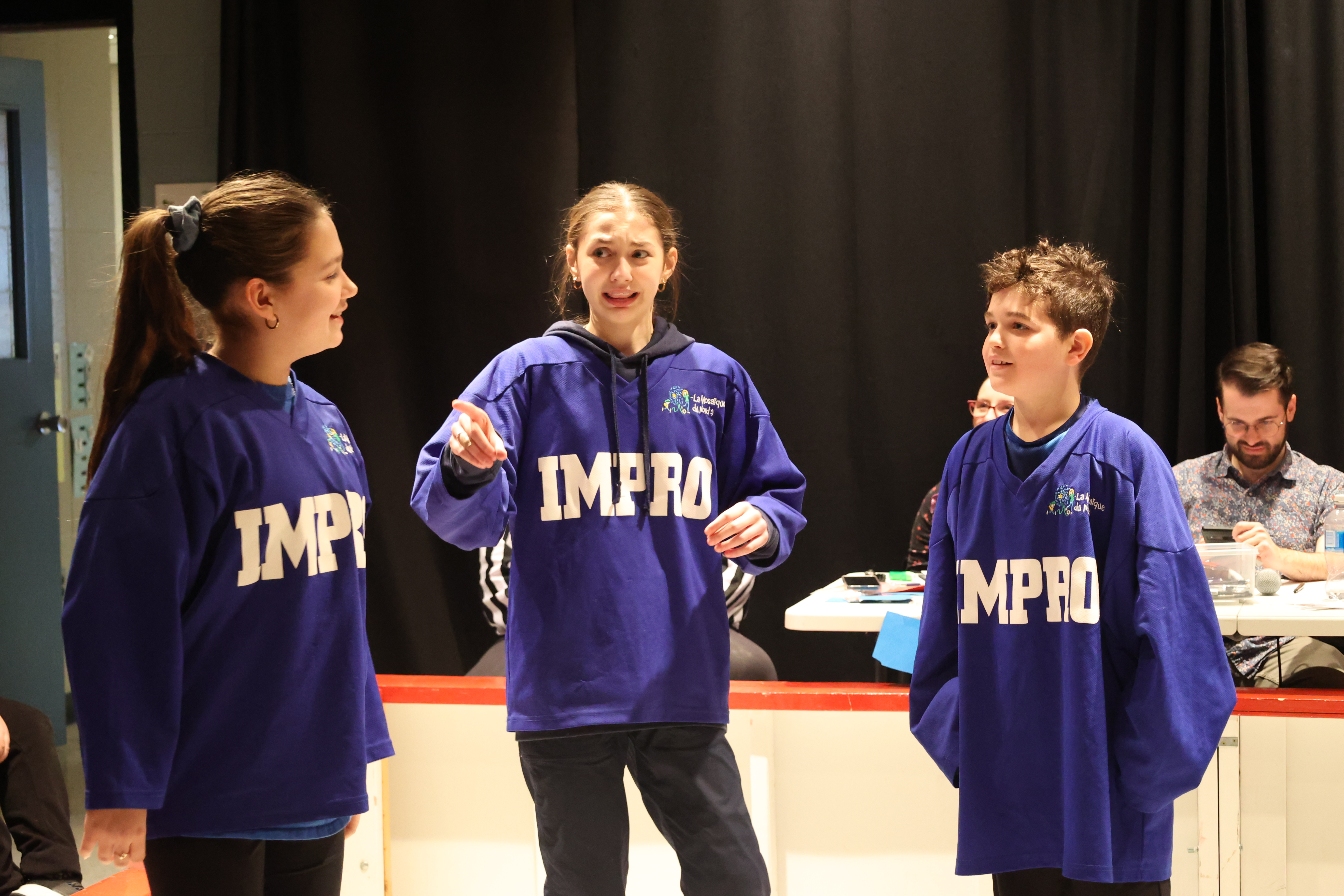 Pendant le tournoi, des improvisateur.trice.s adultes et des jeunes de la Polyvalente Louis-J.-Robichaud ont présenté des mini-spectacles!