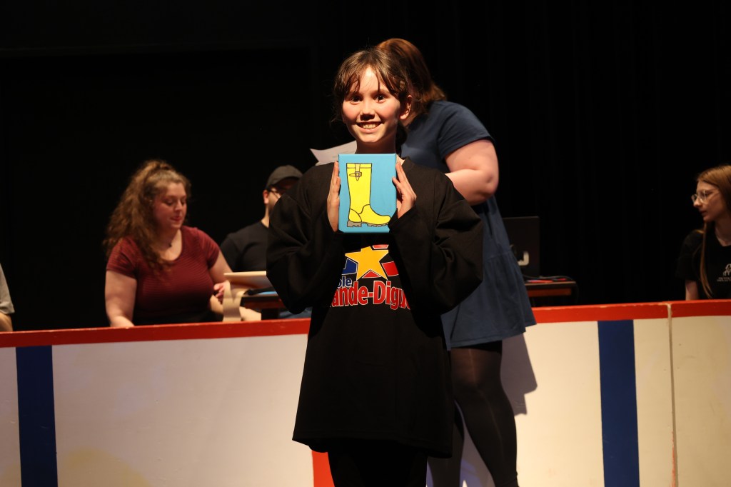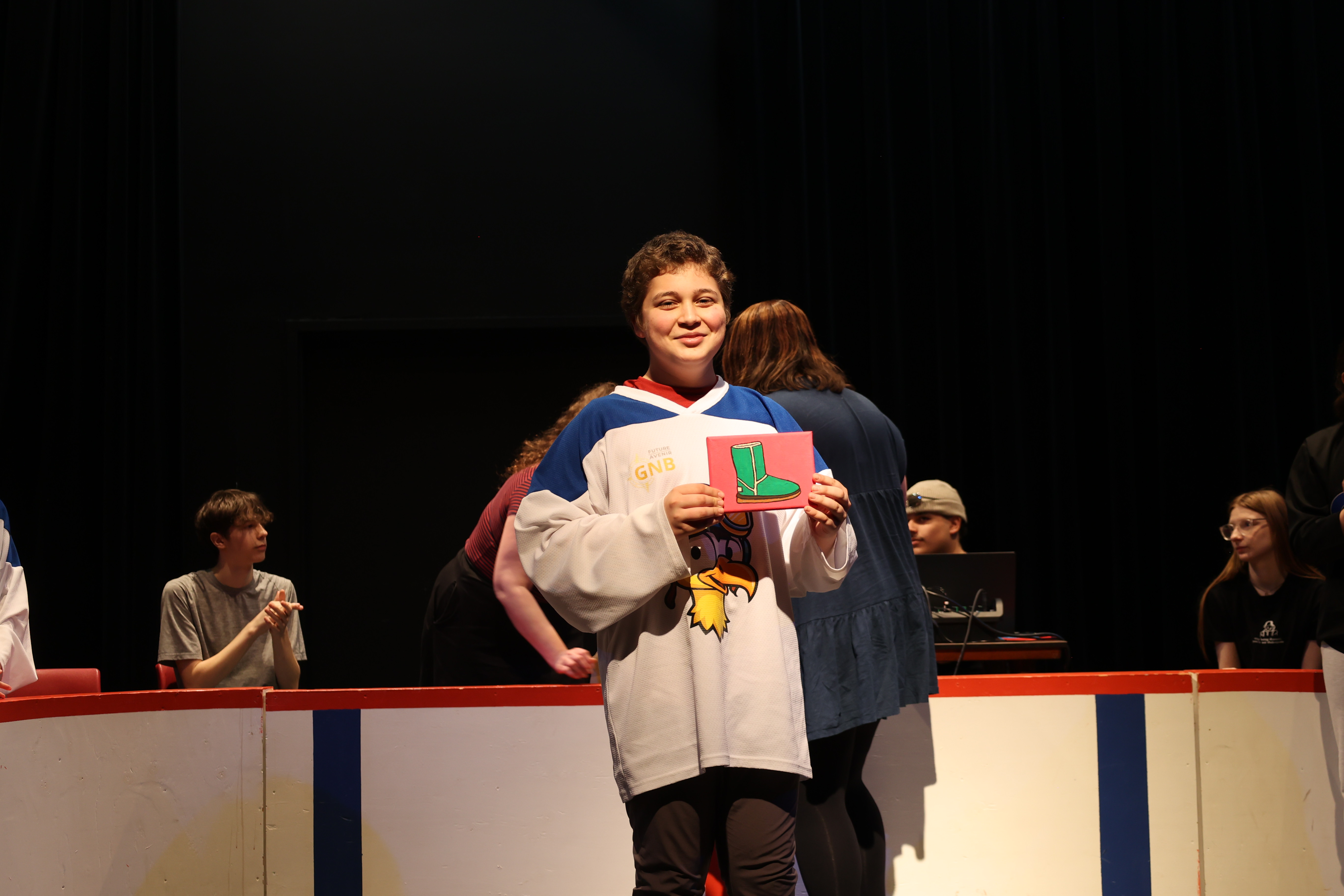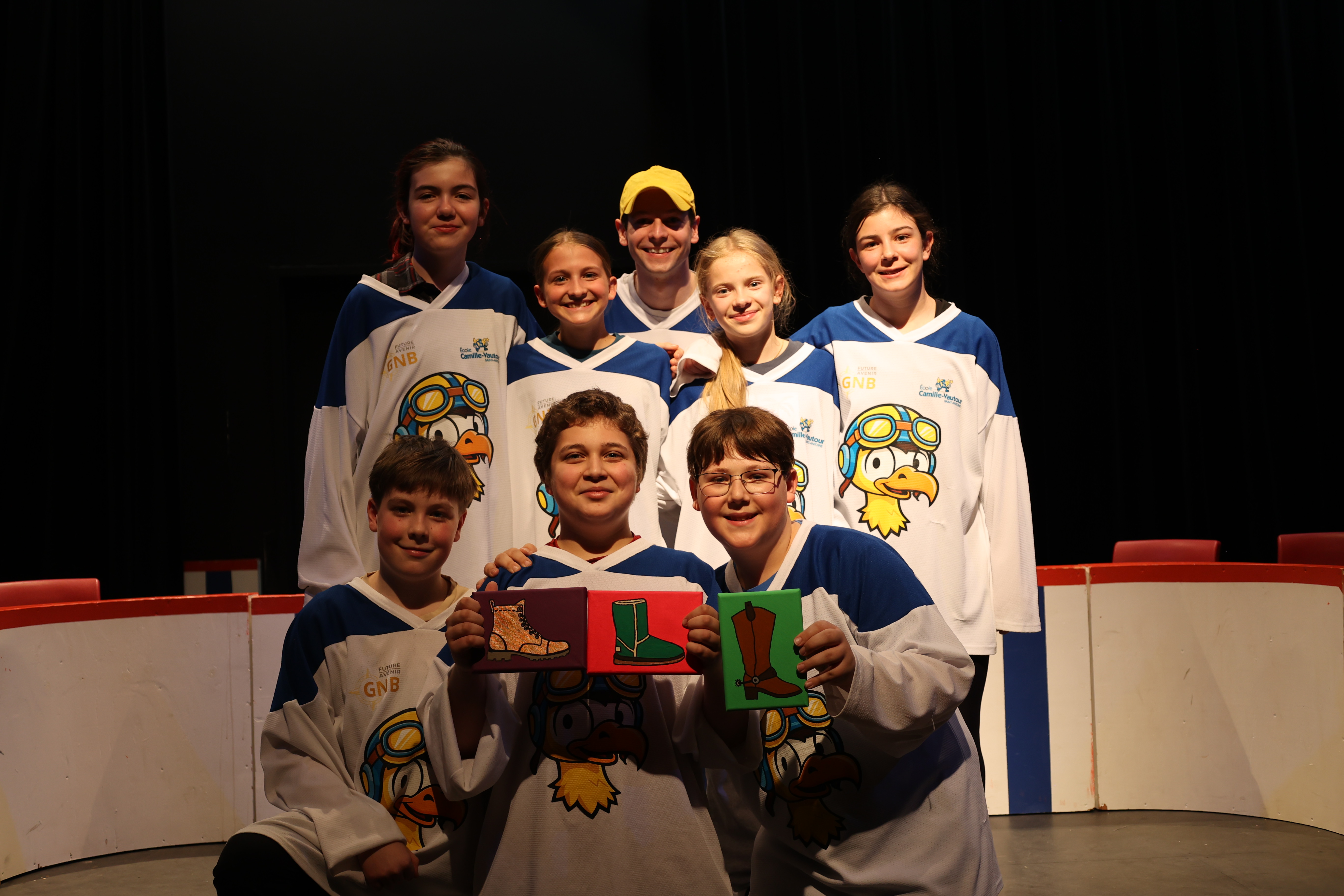 Cette année, Improvisation NB a lancé la première édition des « Bottines de Bronze », une série de mini-tournois régionaux rassemblant des improvisateur.trice.s de la 5e à la 8e année! Depuis 2015, l’improvisation fait partie du volet culturel des Jeux de l’Acadie, encourageant la popularité de cet art chez les jeunes des écoles primaires et intermédiaires partout au Nouveau-Brunswick. « Les Bottines de Bronze » ont été créées pour offrir à ces jeunes une occasion de vivre un tournoi supplémentaire pendant l’année, de partager leur talent sur scène, de continuer leur apprentissage, et de rencontrer d’autres improvisateur.trice.s. Un total de 18 écoles a participé au cours de ces quatre tournois, chacune présentant des matchs amusants et créatifs tout au long de ces événements!