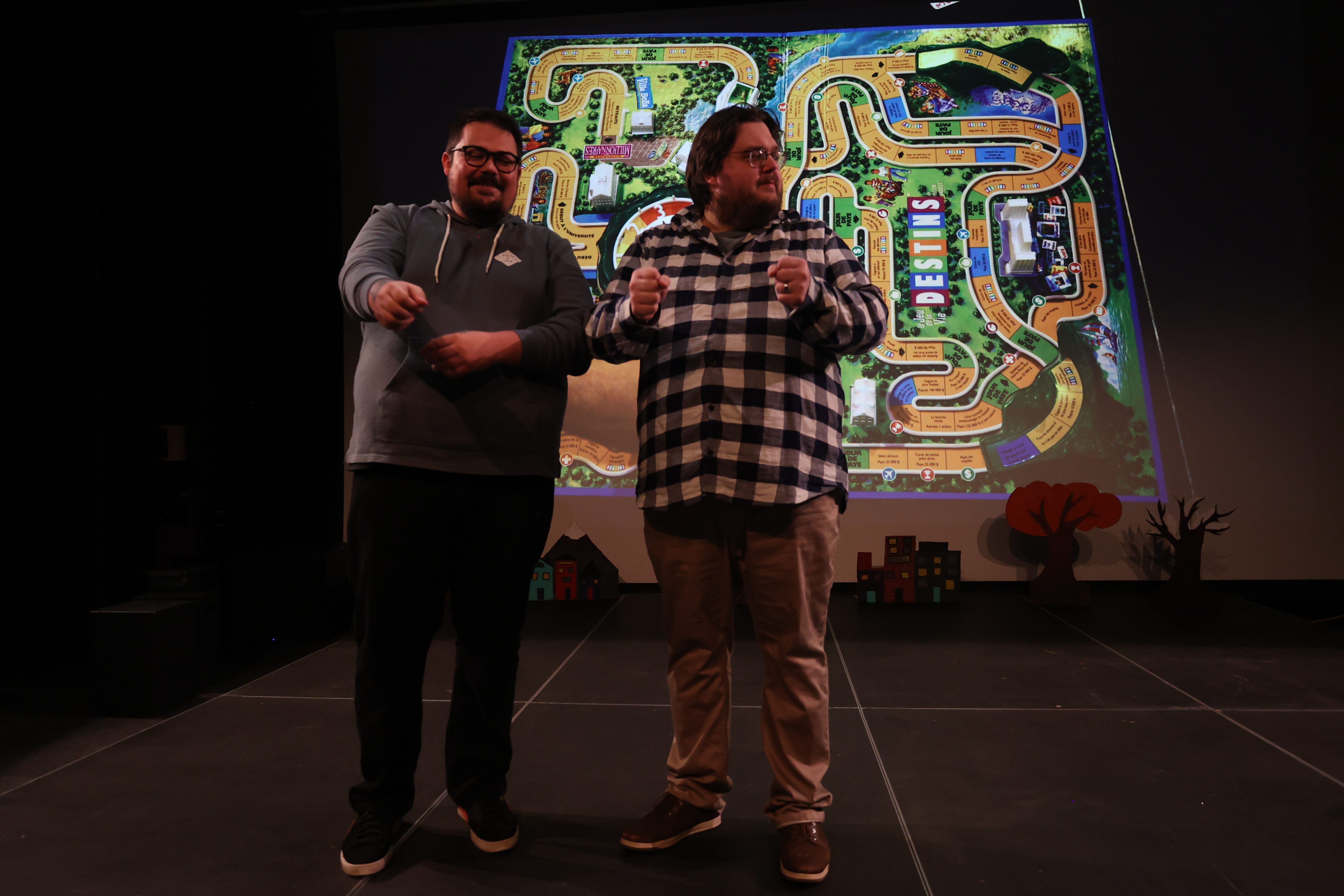 Spectacle de type défis d’improvisation : Ce format propose une série de défis amusants et artistiques qui mettent en valeur toutes les habiletés propres à l’improvisation, tel que la création de personnages et d’histoires spontanément, l’humour, le mime, le chant, la rime, etc. Le nombre de défis présenté est informer par la durée de la prestation. L’organisme peut, sur approbation des idées, intégré au spectacle une thématique générale proposée par les organisateur.trice.s de l’initiative. Par exemple, dans le cadre d’un événement axée sur la musique, une prestation pourrait inclure des défis d’improvisation explorant le chant, l’utilisation d’instruments, l’emploi d’une trame musicale, etc.